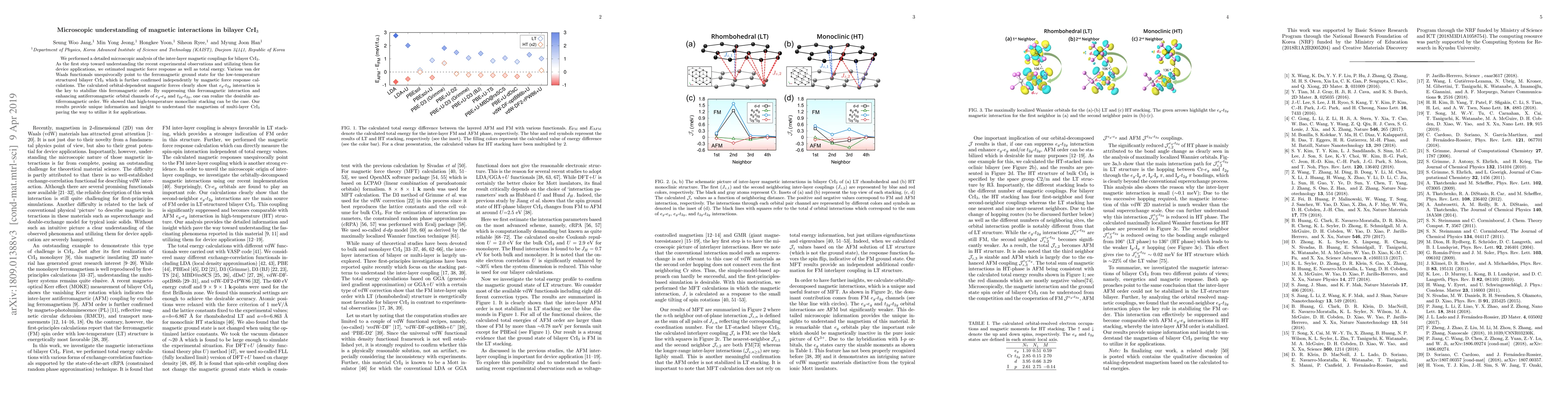 This study provides a microscopic analysis of magnetic interactions in bilayer CrI$_3$, revealing a ferromagnetic ground state stabilized by $e_g$-$t_{2g}$ interaction. The research suggests that manipulating $e_g$-$e_g$ and $t_{2g}$-$t_{2g}$ interactions could achieve antiferromagnetic order, offering insights for future device applications.