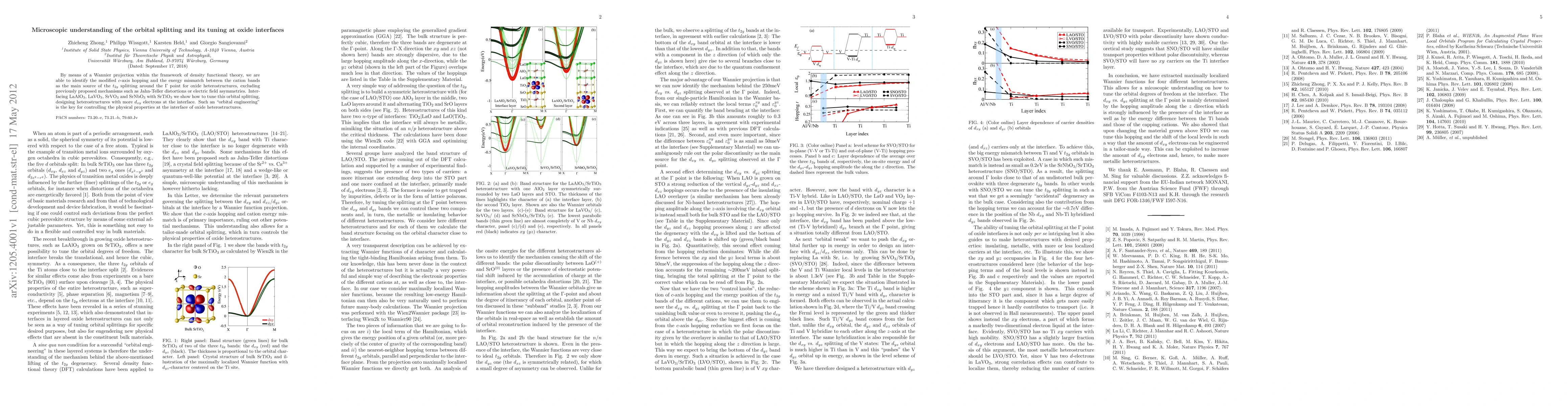 By means of a Wannier projection within the framework of density functional theory, we are able to identify the modified c-axis hopping and the energy mismatch between the cation bands as the main source of the $t_{2g}$ splitting around the $\Gamma$ point for oxide heterostructures, excluding previously proposed mechanisms such as Jahn-Teller distortions or electric field asymmetries. Interfacing LaAlO$_3$, LaVO$_3$, SrVO$_3$ and SrNbO$_3$ with SrTiO$_3$ we show how to tune this orbital splitting, designing heterostructures with more $d_{xy}$ electrons at the interface. Such an "orbital engineering" is the key for controlling the physical properties at the interface of oxide heterostructures.