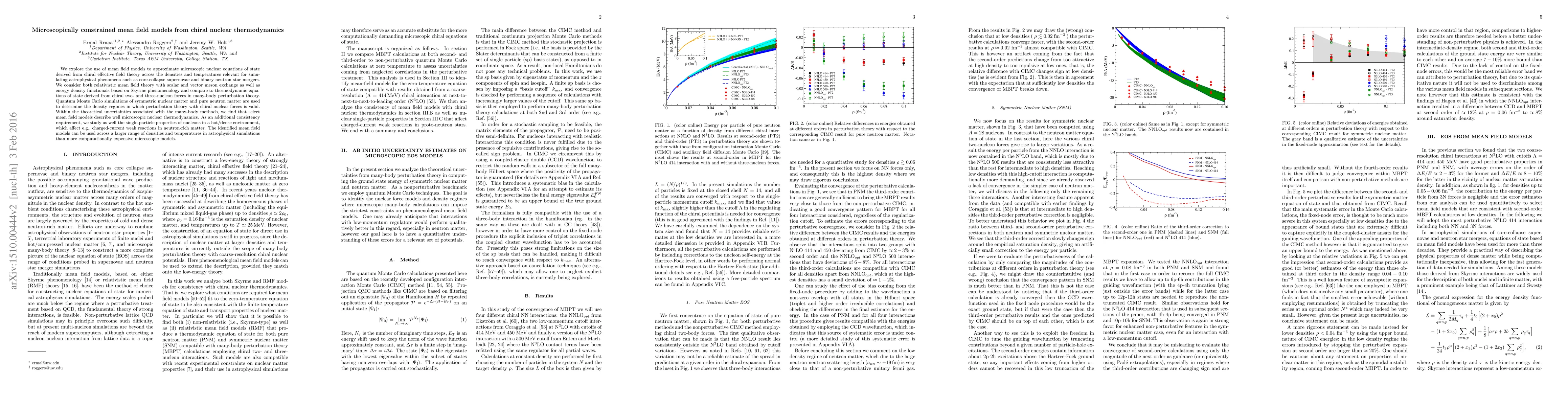 This paper investigates mean field models to approximate nuclear equations of state derived from chiral effective field theory, comparing them to microscopic nuclear thermodynamics. The identified models can effectively simulate astrophysical phenomena like supernovae and neutron star mergers across a broader range of conditions than more computationally intensive microscopic models.
