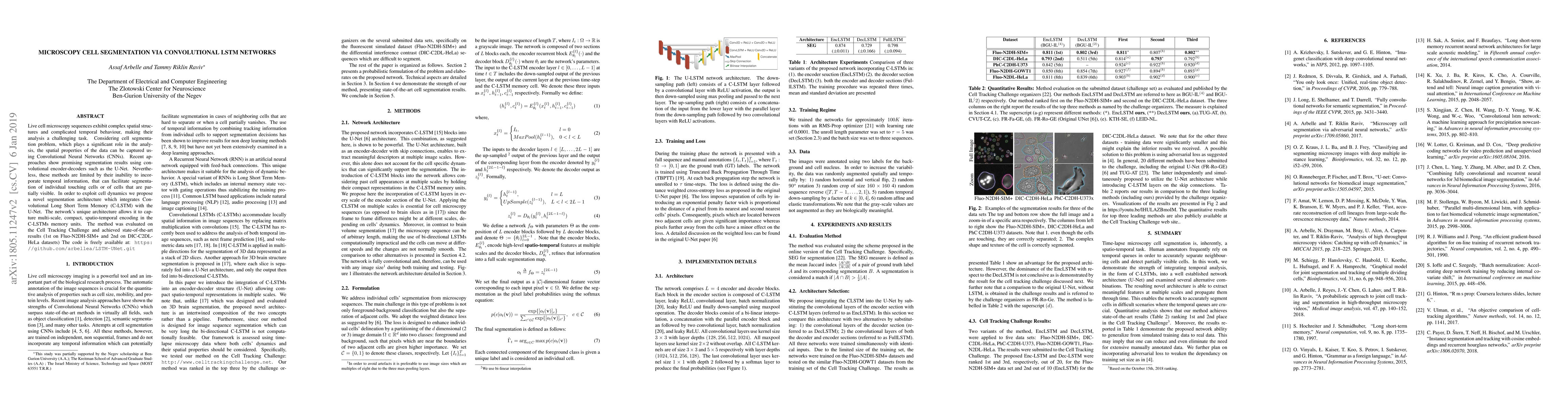 This paper proposes a novel segmentation architecture combining Convolutional Neural Networks (CNNs) with Convolutional Long Short Term Memory (C-LSTM) networks to enhance the segmentation of live cell microscopy sequences. The integrated approach achieves state-of-the-art results in cell tracking challenges by effectively capturing spatio-temporal information.