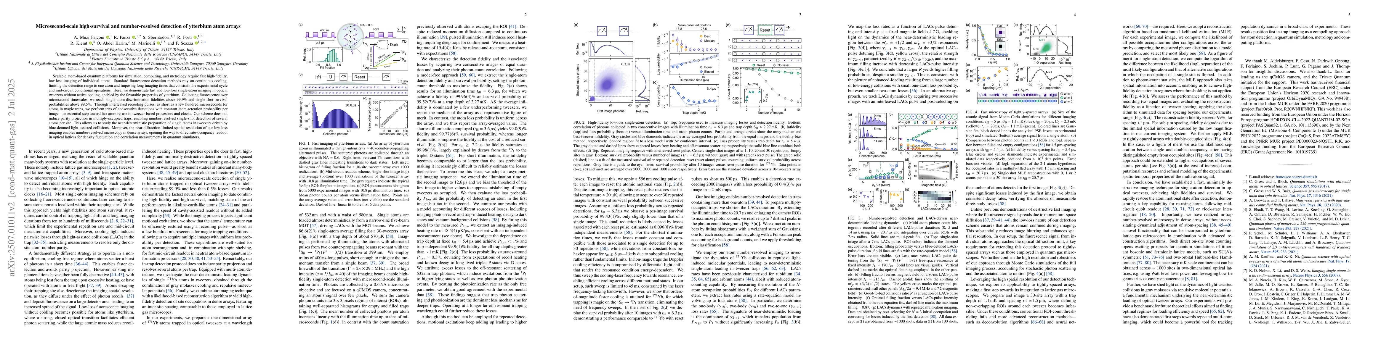 Scalable atom-based quantum platforms for simulation, computing, and metrology require fast high-fidelity, low-loss imaging of individual atoms. Standard fluorescence detection methods rely on continuous cooling, limiting the detection range to one atom and imposing long imaging times that constrain the experimental cycle and mid-circuit conditional operations. Here, we demonstrate fast and low-loss single-atom imaging in optical tweezers without active cooling, enabled by the favorable properties of ytterbium. Collecting fluorescence over microsecond timescales, we reach single-atom discrimination fidelities above 99.9% and single-shot survival probabilities above 99.5%. Through interleaved recooling pulses, as short as a few hundred microseconds for atoms in magic traps, we perform tens of consecutive detections with constant atom-retention probability per image - an essential step toward fast atom re-use in tweezer-based processors and clocks. Our scheme does not induce parity projection in multiply-occupied traps, enabling number-resolved single-shot detection of several atoms per site. This allows us to study the near-deterministic preparation of single atoms in tweezers driven by blue-detuned light-assisted collisions. Moreover, the near-diffraction-limited spatial resolution of our low-loss imaging enables number-resolved microscopy in dense arrays, opening the way to direct site-occupancy readout in optical lattices for density fluctuation and correlation measurements in quantum simulators.