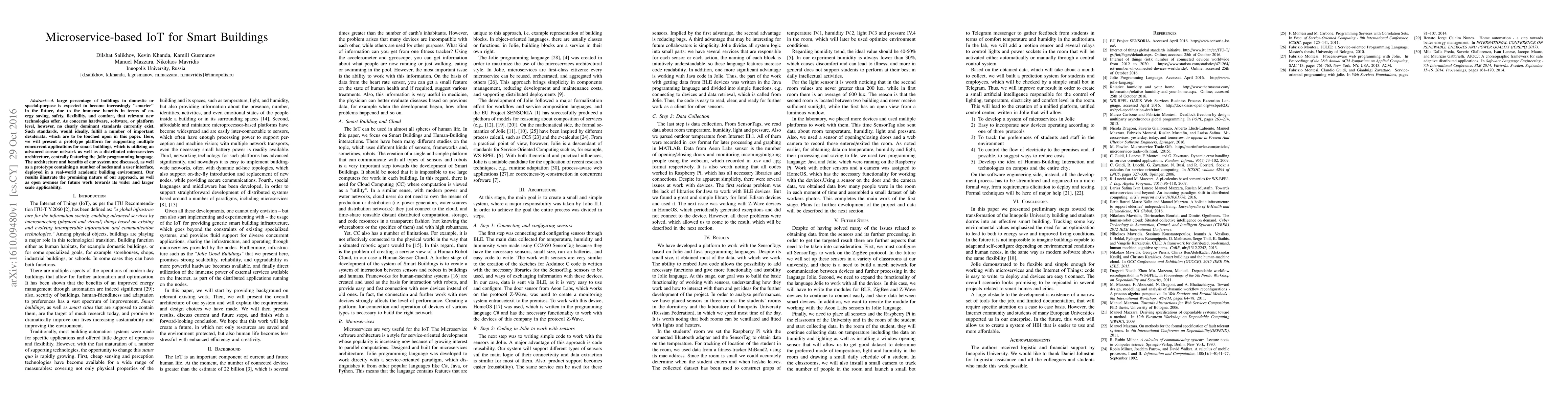 This paper proposes a microservice-based IoT platform for smart buildings, utilizing an advanced sensor network and the Jolie programming language. A prototype was deployed in an academic building, demonstrating promising results and potential for future scalability.
