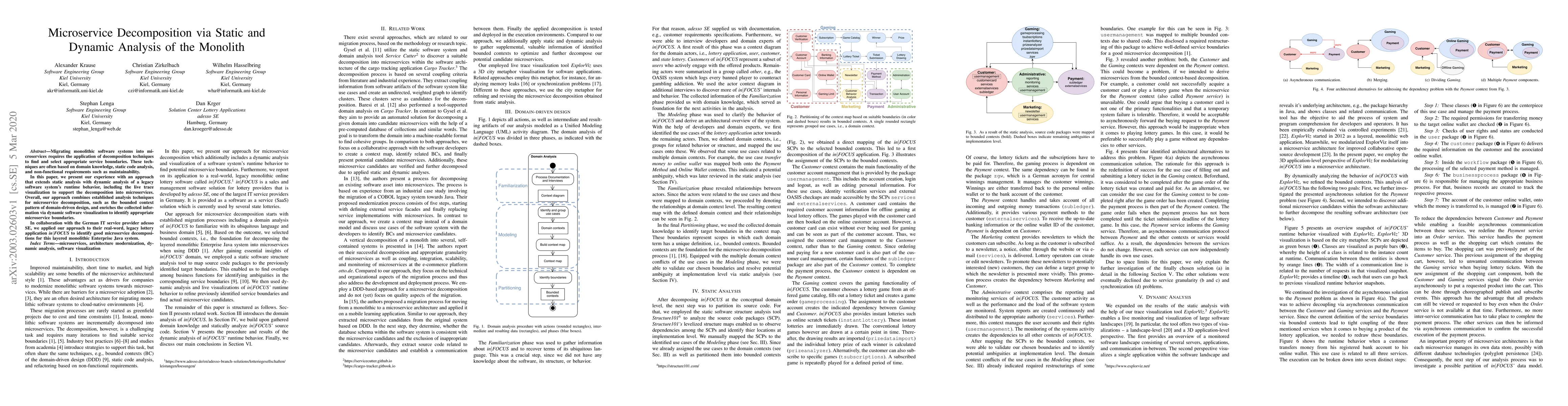 This paper presents an approach combining static and dynamic analysis to decompose monolithic software systems into microservices, using live trace visualization to support the process. The method was applied to adesso SE's legacy lottery application to identify optimal microservice boundaries.