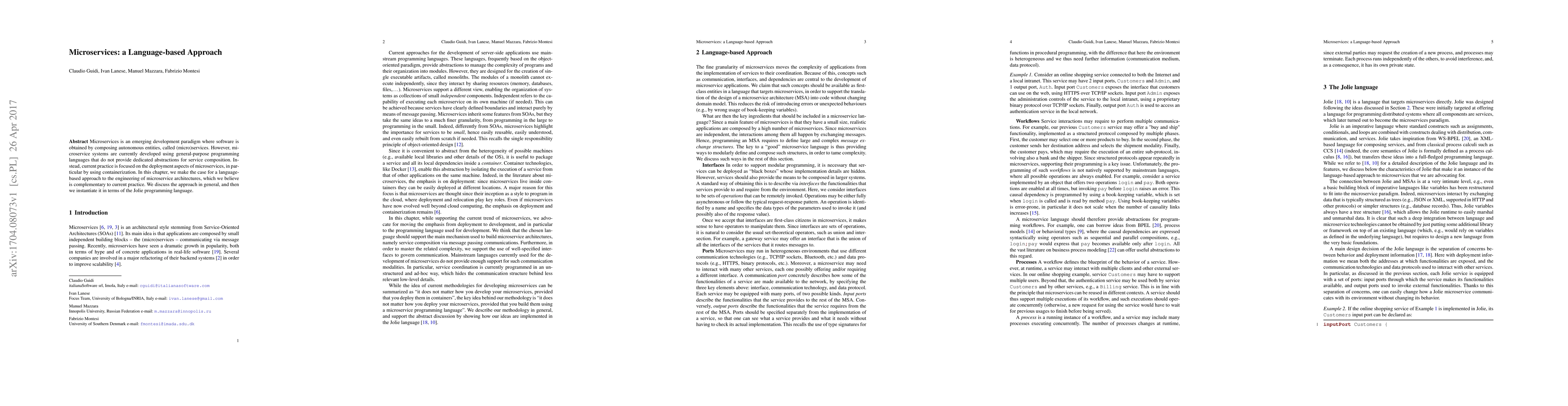 The paper advocates for a language-based approach to microservices, instantiating this with the Jolie programming language, which offers first-class support for interfaces, ports, workflows, and separation of behavior from deployment information.
