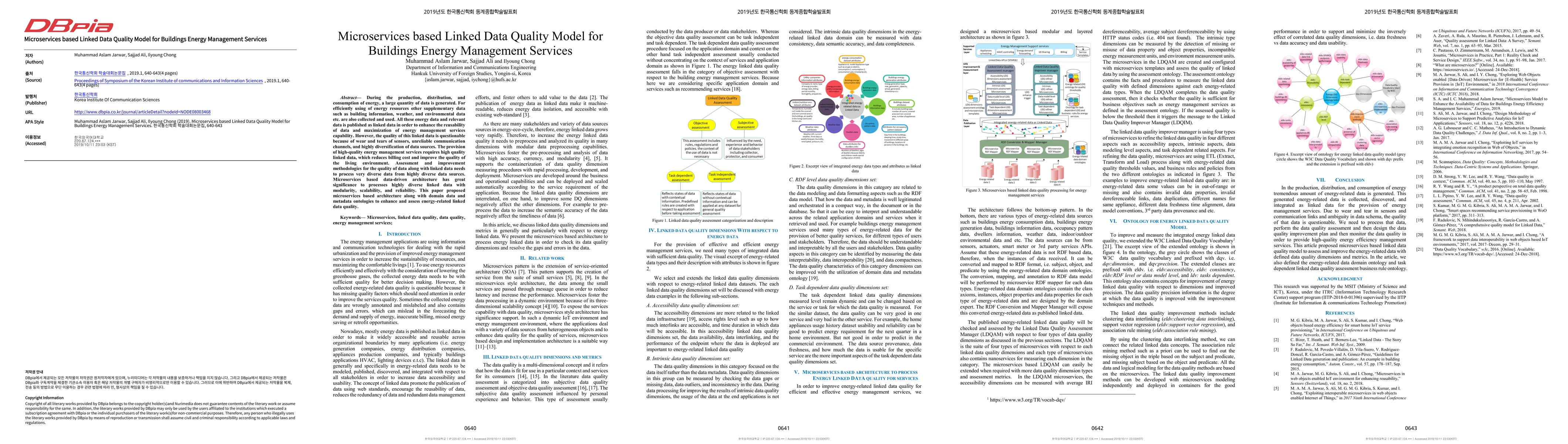 This paper proposes a microservices-based linked data quality model for building energy management services, aiming to enhance data reusability and service capability through high-quality linked data, addressing issues from diverse data sources and unreliable sensors. The model leverages microservices architecture for modularity, scalability, and reliability in processing diverse data.