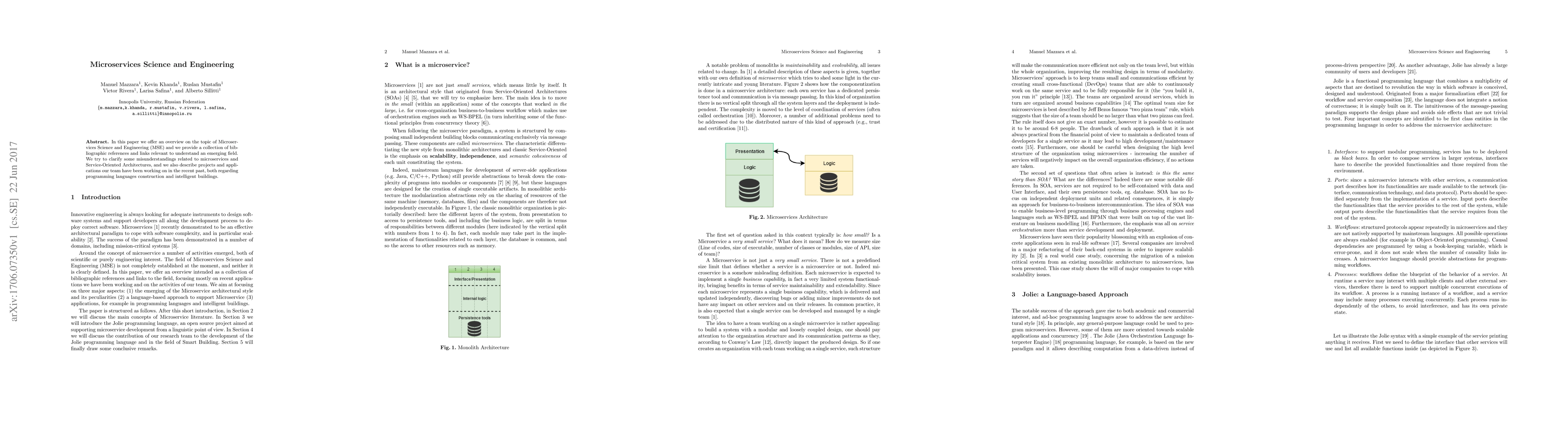 This paper provides an overview of Microservices Science and Engineering (MSE), clarifying misunderstandings about microservices and Service-Oriented Architectures while highlighting recent projects in programming languages construction and intelligent buildings.