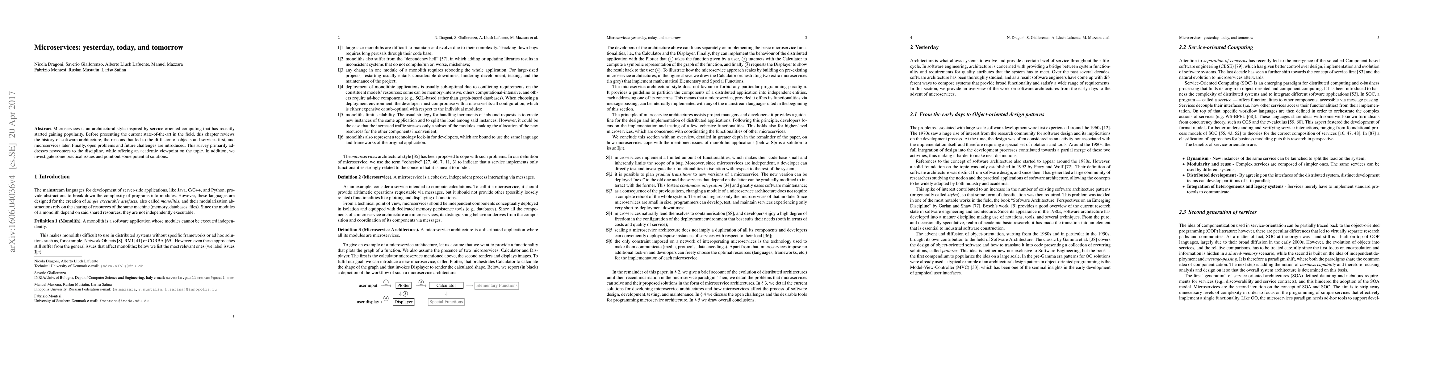 Microservices is an architectural style inspired by service-oriented computing that has recently started gaining popularity. Before presenting the current state-of-the-art in the field, this chapter reviews the history of software architecture, the reasons that led to the diffusion of objects and services first, and microservices later. Finally, open problems and future challenges are introduced. This survey primarily addresses newcomers to the discipline, while offering an academic viewpoint on the topic. In addition, we investigate some practical issues and point out some potential solutions.