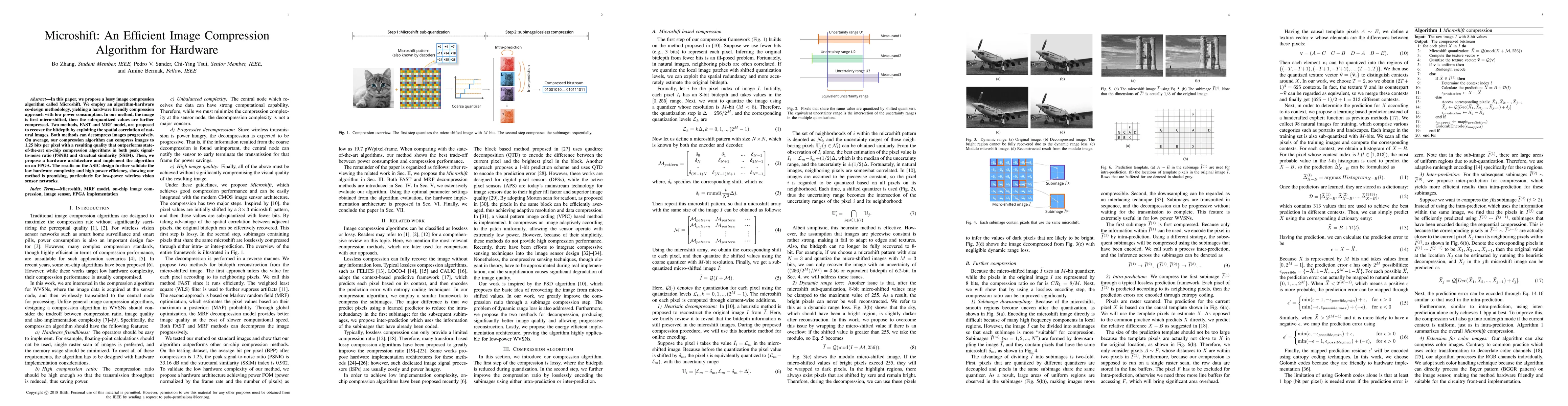 Researchers propose a new image compression algorithm called Microshift that achieves high compression efficiency with low power consumption, outperforming existing on-chip algorithms.