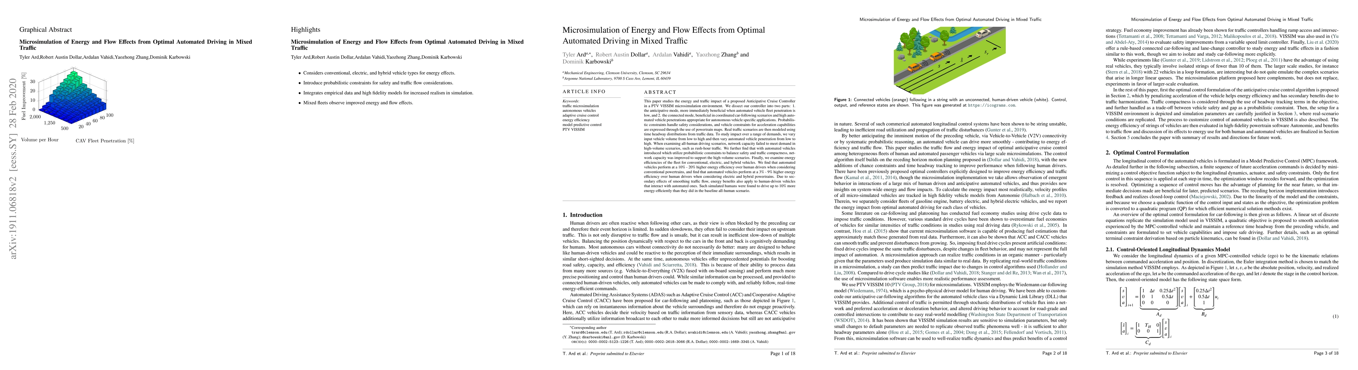 This paper studies the energy and traffic impact of a proposed Anticipative Cruise Controller in a PTV VISSIM microsimulation environment. We dissect our controller into two parts: 1. the anticipative mode, more immediately beneficial when automated vehicle fleet penetration is low, and 2. the connected mode, beneficial in coordinated car-following scenarios and high automated vehicle penetrations appropriate for autonomous vehicle specific applications. Probabilistic constraints handle safety considerations, and vehicle constraints for acceleration capabilities are expressed through the use of powertrain maps. Real traffic scenarios are then modeled using time headway distributions from traffic data. To study impact over a range of demands, we vary input vehicle volume from low to high and then vary automated vehicle penetration from low to high. When examining all-human driving scenarios, network capacity failed to meet demand in high-volume scenarios, such as rush-hour traffic. We further find that with automated vehicles introduced which utilize probabilistic constraints to balance safety and traffic compactness, network capacity was improved to support the high-volume scenarios. Finally, we examine energy efficiencies of the fleet for conventional, electric, and hybrid vehicles. We find that automated vehicles perform at a 10% - 20% higher energy efficiency over human drivers when considering conventional powertrains, and find that automated vehicles perform at a 3% - 9% higher energy efficiency over human drivers when considering electric and hybrid powertrains. Due to secondary effects of smoothing traffic flow, energy benefits also apply to human-driven vehicles that interact with automated ones. Such simulated humans were found to drive up to 10% more energy-efficiently than they did in the baseline all-human scenario.