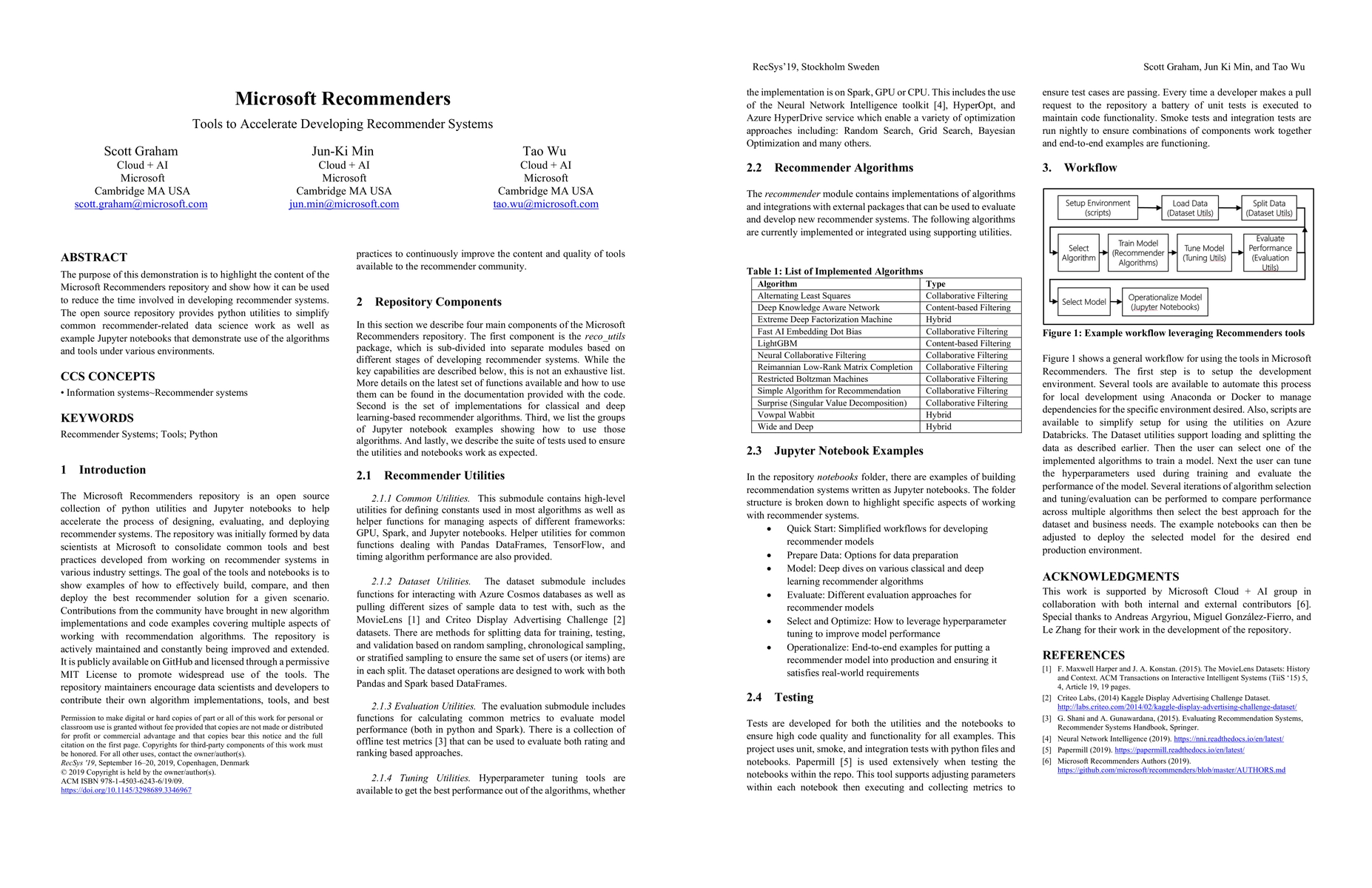 The purpose of this work is to highlight the content of the Microsoft Recommenders repository and show how it can be used to reduce the time involved in developing recommender systems. The open source repository provides python utilities to simplify common recommender-related data science work as well as example Jupyter notebooks that demonstrate use of the algorithms and tools under various environments.