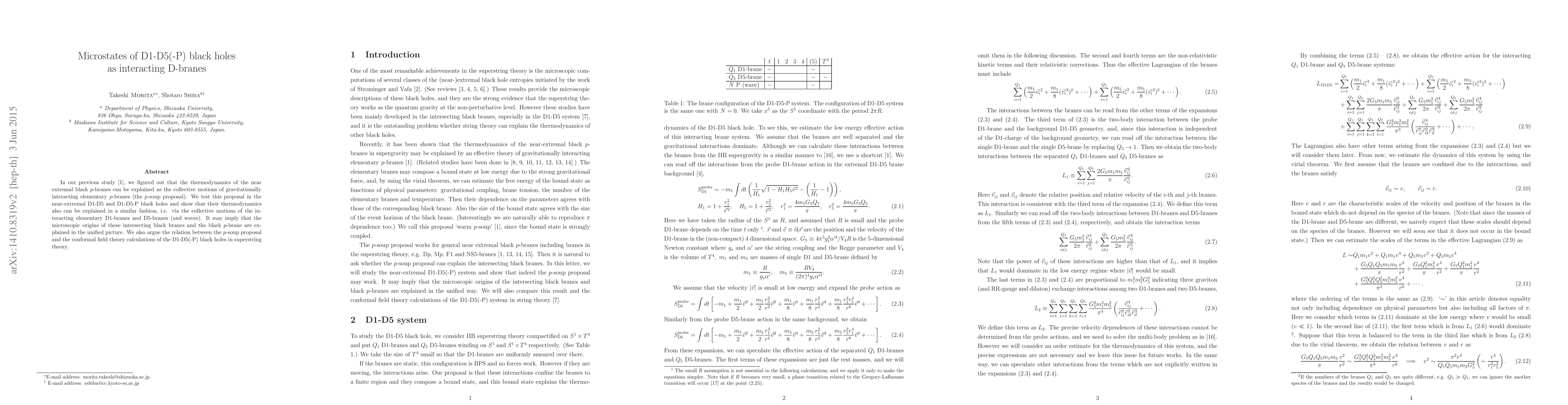 This research extends the "p-soup" proposal to near-extremal D1-D5 and D1-D5-P black holes, suggesting their thermodynamics arises from the collective interactions of elementary D1 and D5 branes. It also connects this proposal to conformal field theory calculations in superstring theory.