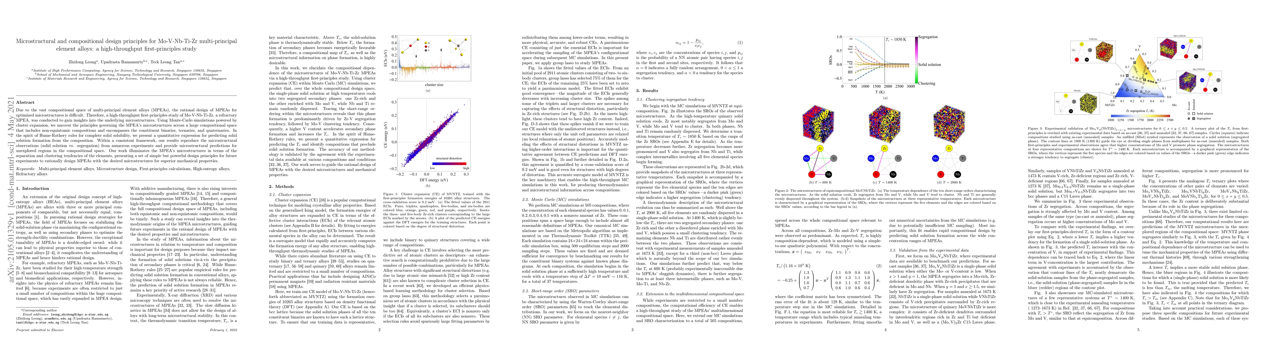 This study employs high-throughput first-principles calculations and Monte-Carlo simulations to explore the microstructural design principles of Mo-V-Nb-Ti-Zr multi-principal element alloys. It reveals design rules for predicting solid solution formation and segregation tendencies, providing a framework for optimizing microstructures for enhanced mechanical properties.