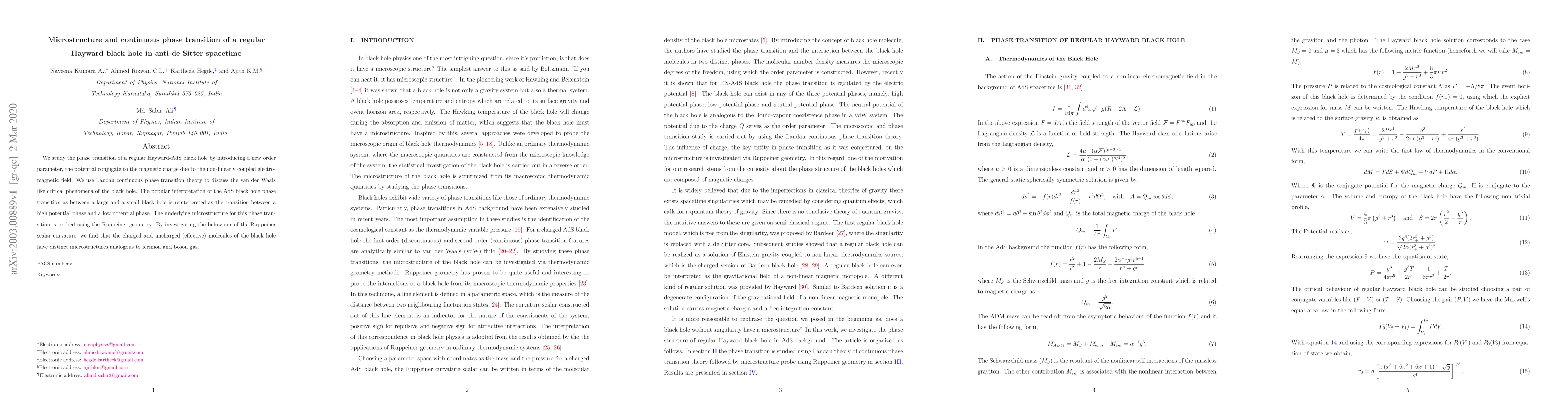 We study the phase transition of a regular Hayward-AdS black hole by introducing a new order parameter, the potential conjugate to the magnetic charge due to the non-linearly coupled electromagnetic field. We use Landau continuous phase transition theory to discuss the van der Waals like critical phenomena of the black hole. The popular interpretation of the AdS black hole phase transition as between a large and a small black hole is reinterpreted as the transition between a high potential phase and a low potential phase. The underlying microstructure for this phase transition is probed using the Ruppeiner geometry. By investigating the behaviour of the Ruppeiner scalar curvature, we find that the charged and uncharged (effective) molecules of the black hole have distinct microstructures analogous to fermion and boson gas.
