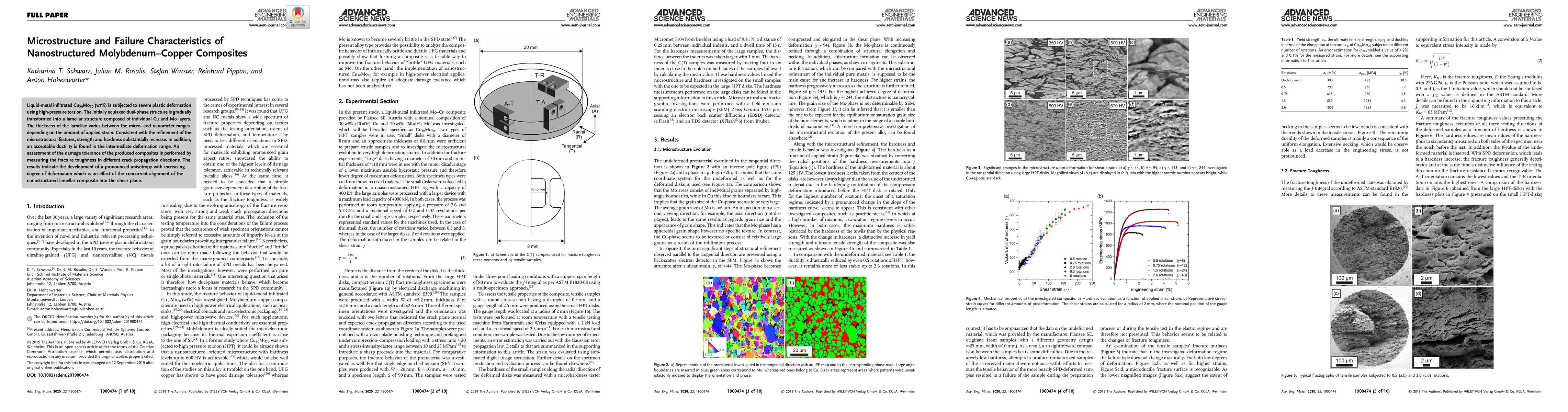 This paper investigates the microstructure and failure characteristics of nanostructured Cu30Mo70 composites processed via high pressure torsion, revealing significant strength and hardness improvements through microstructural refinement and the development of anisotropy in fracture toughness due to the alignment of nanostructured lamellar layers.