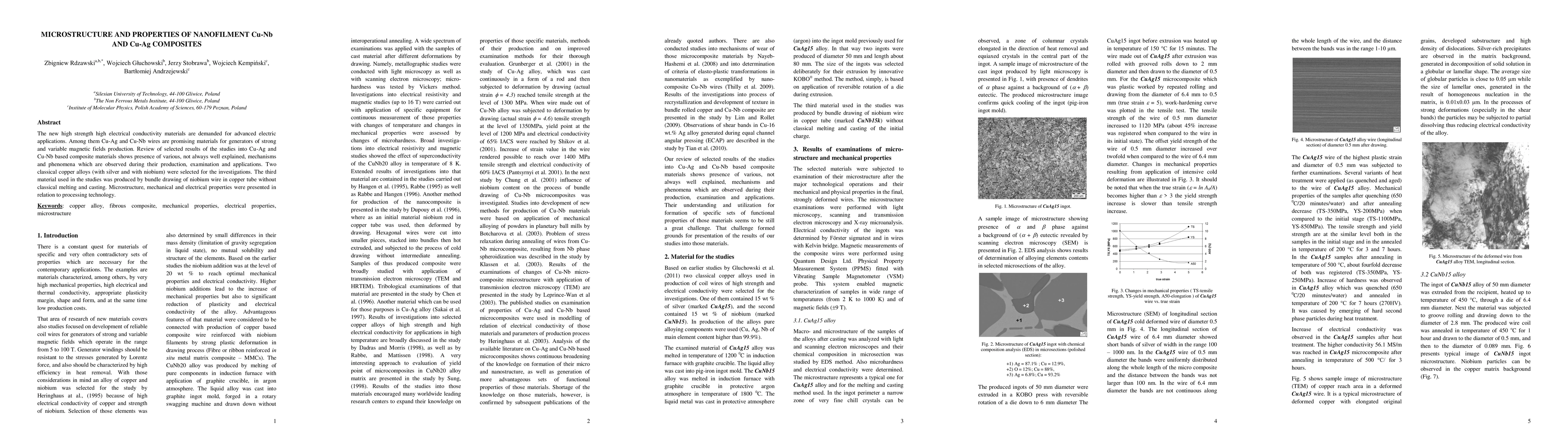 This study investigates the microstructure and properties of Cu-Ag and Cu-Nb composites, highlighting their potential for advanced electric applications due to high strength and conductivity. The research focuses on the effects of processing techniques on the composites' mechanical and electrical properties.