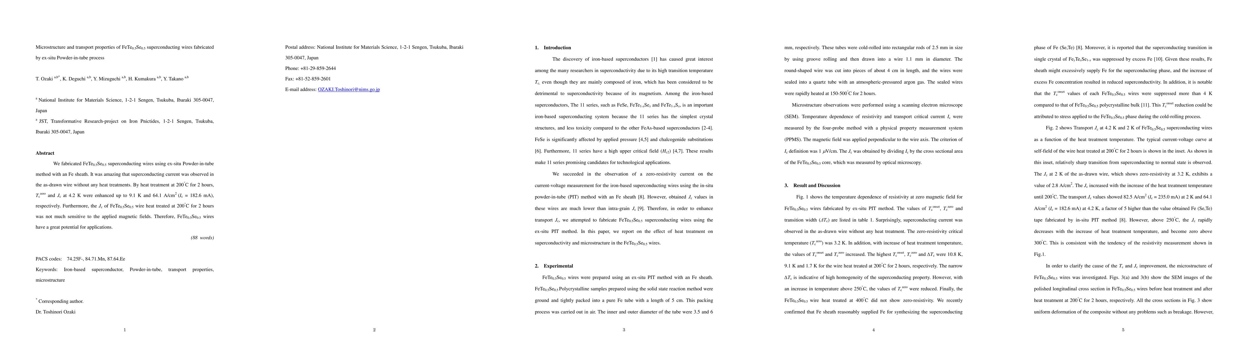This study fabricated FeTe0.5Se0.5 superconducting wires via the ex-situ powder-in-tube method, revealing superconductivity in the as-drawn wire without heat treatment. Heat treatment at 200°C improved Tc and critical current density, indicating great potential for practical applications.
