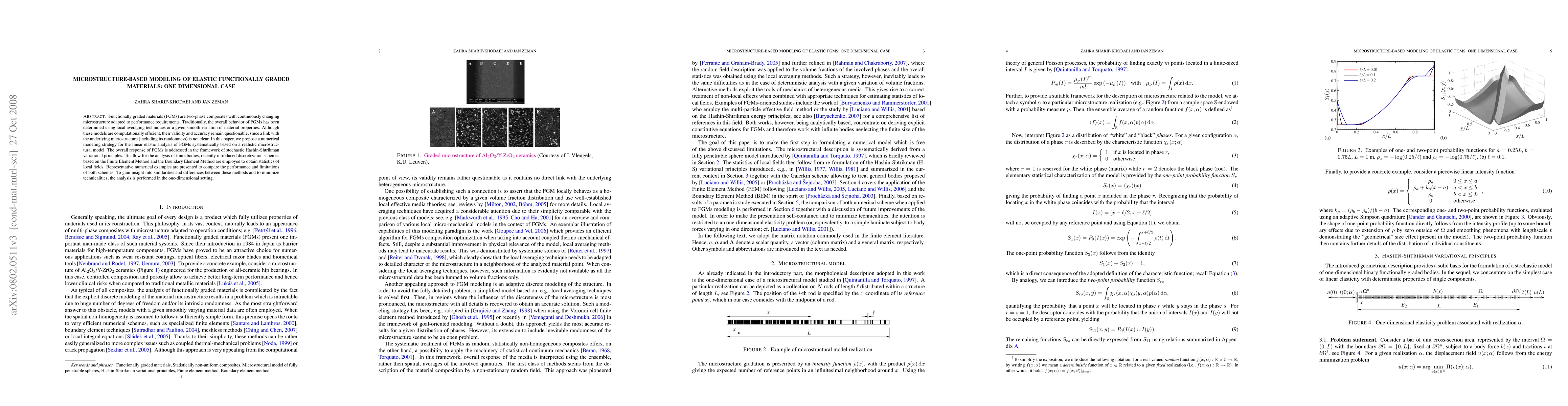 This paper proposes a microstructure-based modeling strategy for linear elastic analysis of one-dimensional functionally graded materials (FGMs) using stochastic Hashin-Shtrikman principles and finite/boundary element methods to capture microstructural randomness, contrasting traditional averaging techniques. Numerical examples demonstrate the performance and accuracy of the proposed methods.