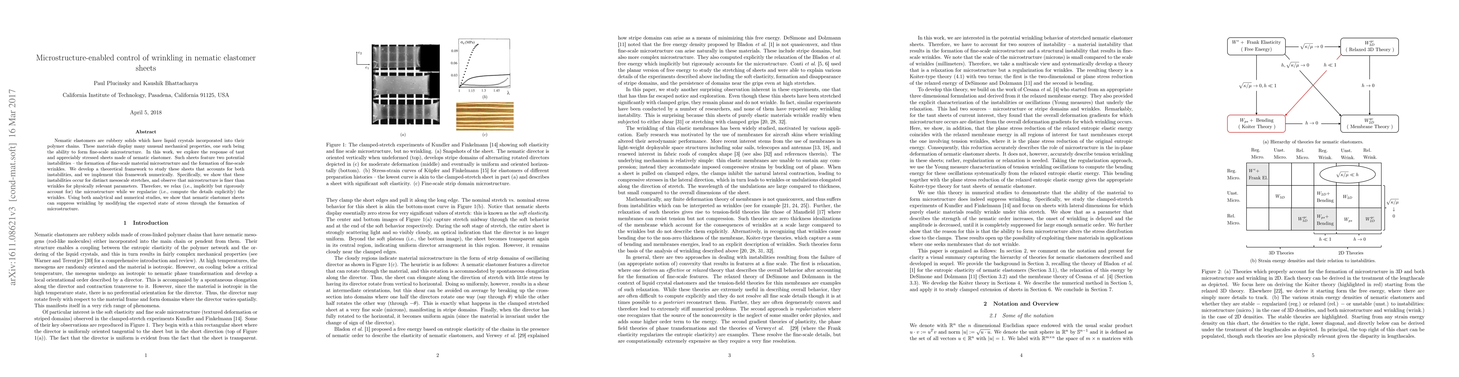 This paper explores the mechanical behavior of nematic elastomer sheets under stress, focusing on the competition between microstructure formation and wrinkling. It develops a theoretical framework to analyze these instabilities, showing that microstructure can suppress wrinkling by altering the stress state.