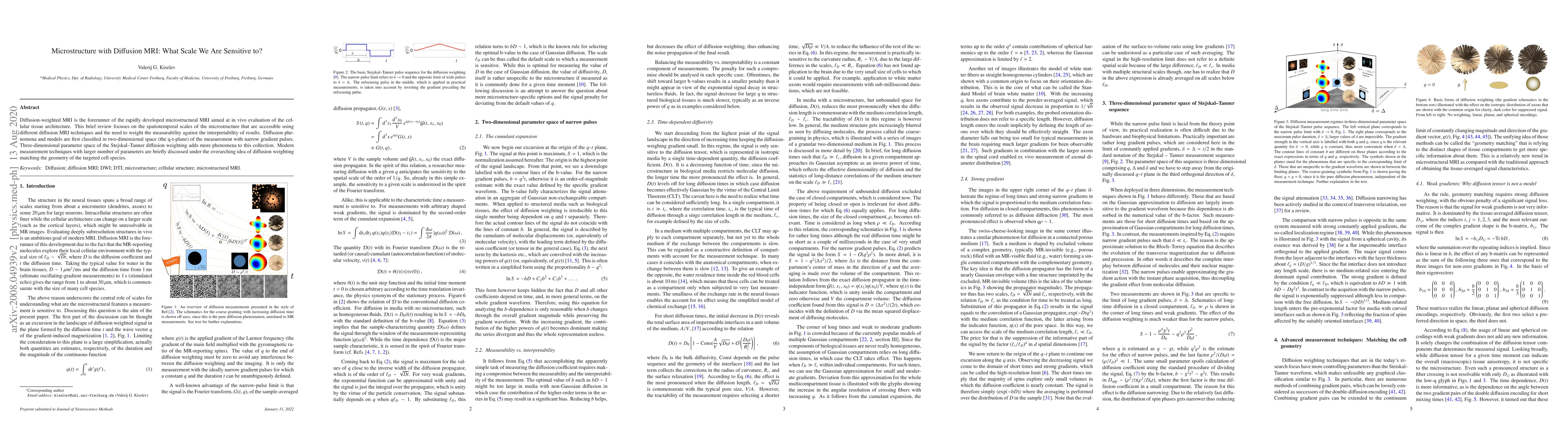 This paper reviews the scales of microstructure detectable via diffusion MRI, emphasizing the balance between measurable detail and interpretability. It discusses diffusion phenomena and models in two-dimensional and three-dimensional parameter spaces, and highlights modern techniques that better align diffusion weighting with the geometry of specific cell types.