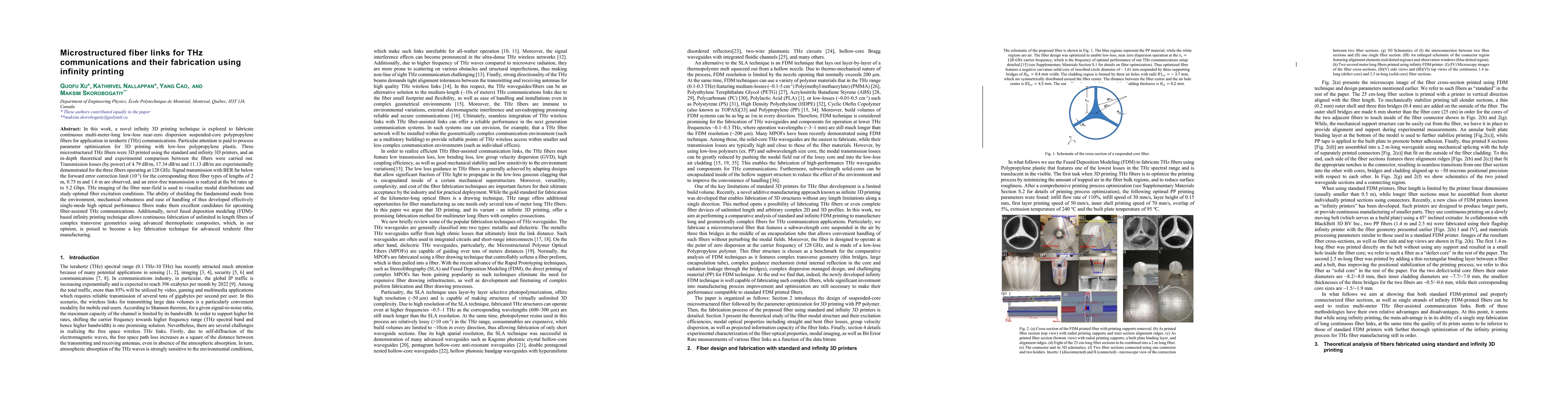 This paper explores the fabrication of continuous, low-loss microstructured fibers for THz communications using a novel infinity 3D printing technique, achieving transmission losses as low as 4.79 dB/m and error-free transmission at bit rates up to 5.2 Gbps, highlighting their potential for future fiber-assisted THz communications.