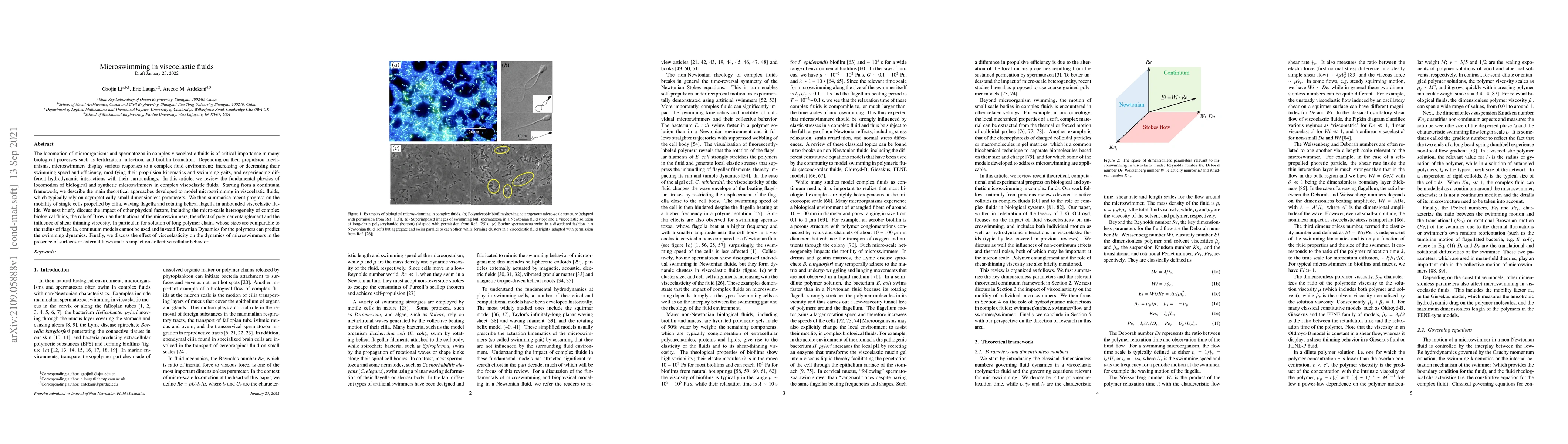 This paper reviews the physics of microswimmers in viscoelastic fluids, detailing theoretical models and recent advances in understanding their locomotion. It highlights the impact of fluid complexity, Brownian fluctuations, and polymer entanglement on microswimmer dynamics, and discusses the influence of viscoelasticity on their behavior near surfaces and in external flows.