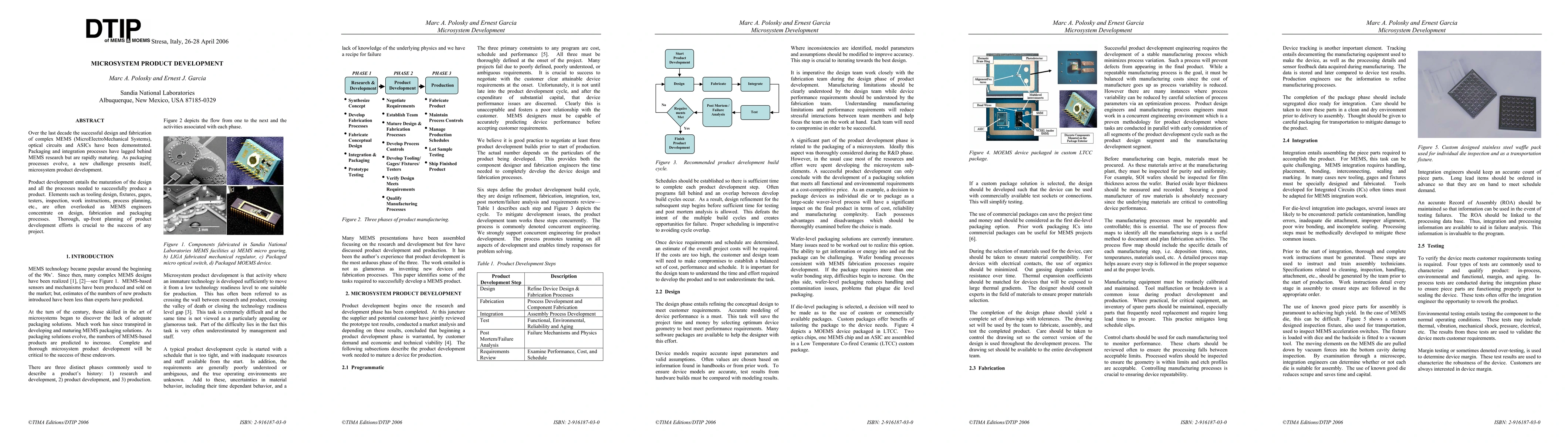 This paper discusses the challenges and importance of microsystem product development in the context of advancing MEMS, optical circuits, and ASICs. It emphasizes the need for comprehensive planning and integration of all necessary processes, including tooling and inspection, to ensure successful product production.