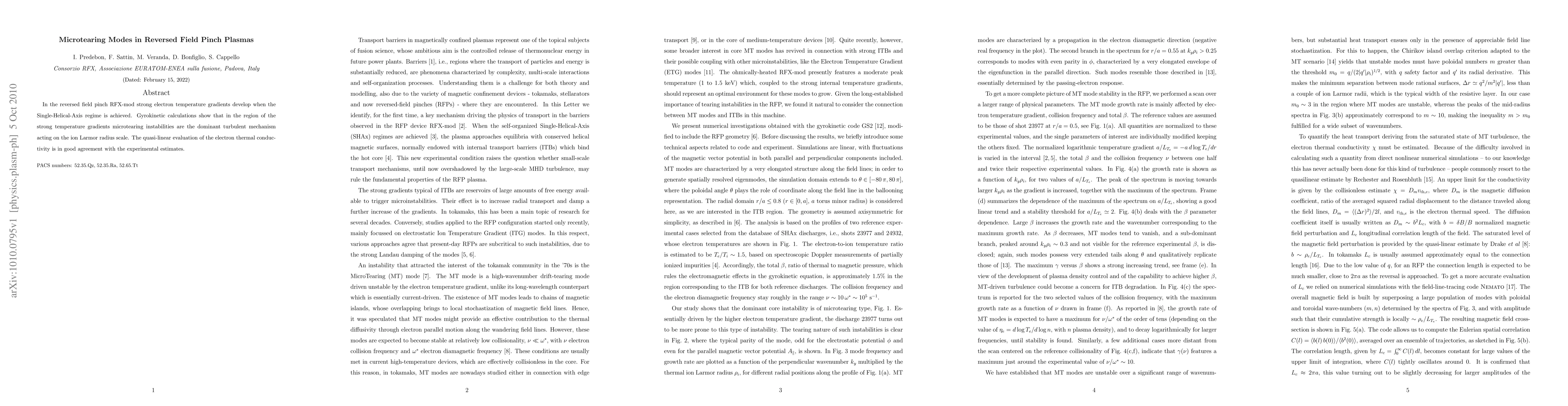 This paper investigates microtearing instabilities in RFX-mod reversed field pinch plasmas, revealing that these instabilities dominate turbulence in regions with strong electron temperature gradients. Gyrokinetic calculations align well with experimental thermal conductivity estimates.