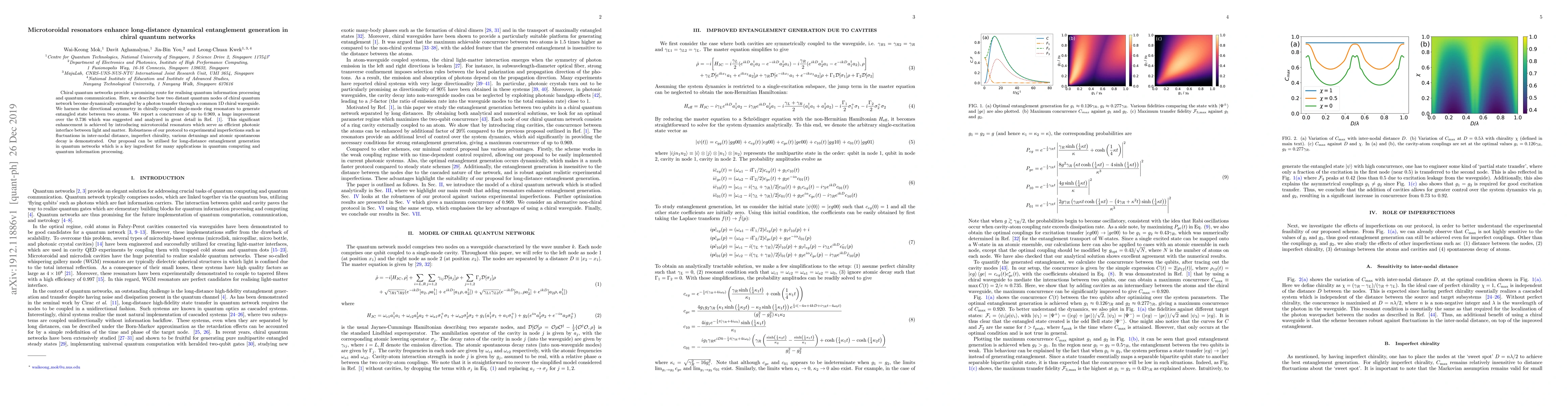 Chiral quantum networks provide a promising route for realising quantum information processing and quantum communication. Here, we describe how two distant quantum nodes of chiral quantum network become dynamically entangled by a photon transfer through a common 1D chiral waveguide. We harness the directional asymmetry in chirally-coupled single-mode ring resonators to generate entangled state between two atoms. We report a concurrence of up to 0.969, a huge improvement over the 0.736 which was suggested and analyzed in great detail in Ref. [1]. This significant enhancement is achieved by introducing microtoroidal resonators which serve as efficient photonic interface between light and matter. Robustness of our protocol to experimental imperfections such as fluctuations in inter-nodal distance, imperfect chirality, various detunings and atomic spontaneous decay is demonstrated. Our proposal can be utilised for long-distance entanglement generation in quantum networks which is a key ingredient for many applications in quantum computing and quantum information processing.