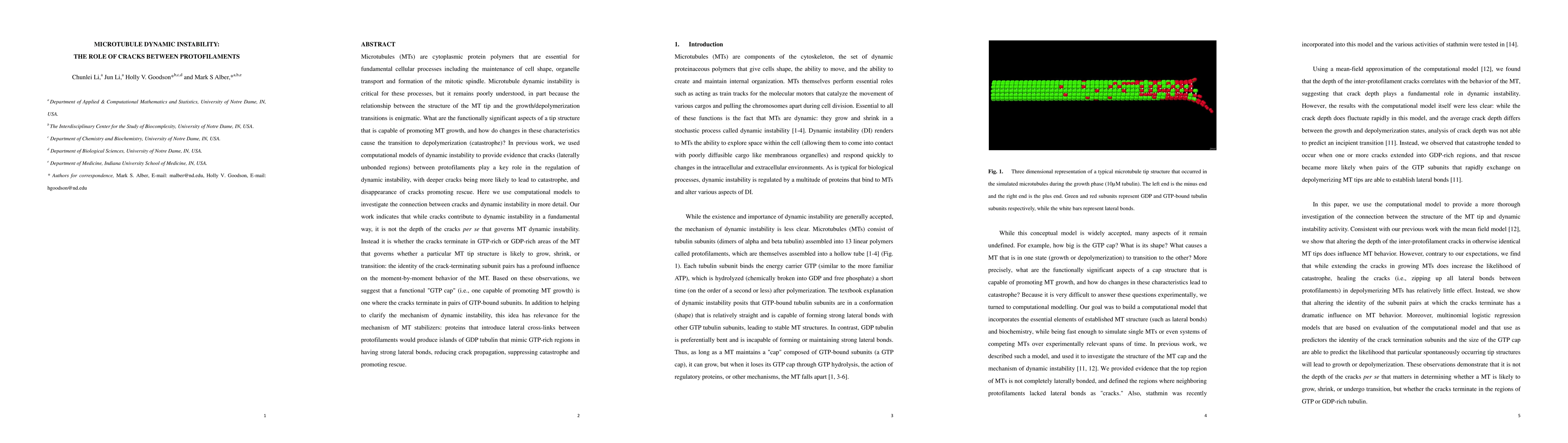 This paper investigates the role of cracks between protofilaments in microtubule dynamic instability, using computational models to show that the termination of cracks in GTP-rich or GDP-rich areas determines whether microtubules grow, shrink, or undergo depolymerization, rather than the depth of the cracks.