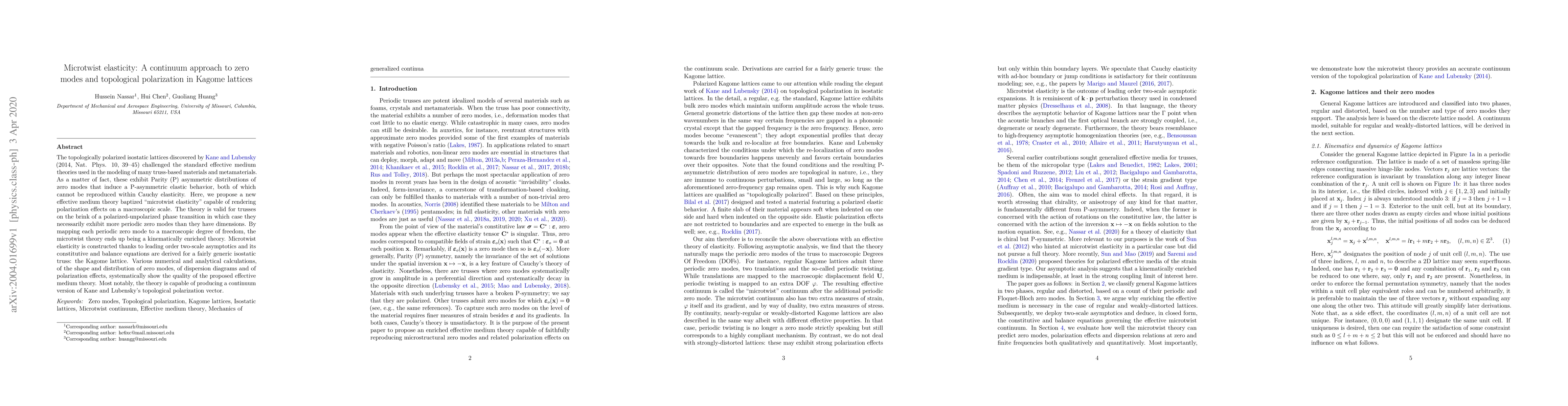 This paper introduces "microtwist elasticity," a novel effective medium theory that models the topological polarization observed in isostatic lattices like the Kagome lattice. It provides a continuum approach to describe the asymmetric elastic behavior induced by zero modes, offering a more accurate description than traditional Cauchy elasticity.