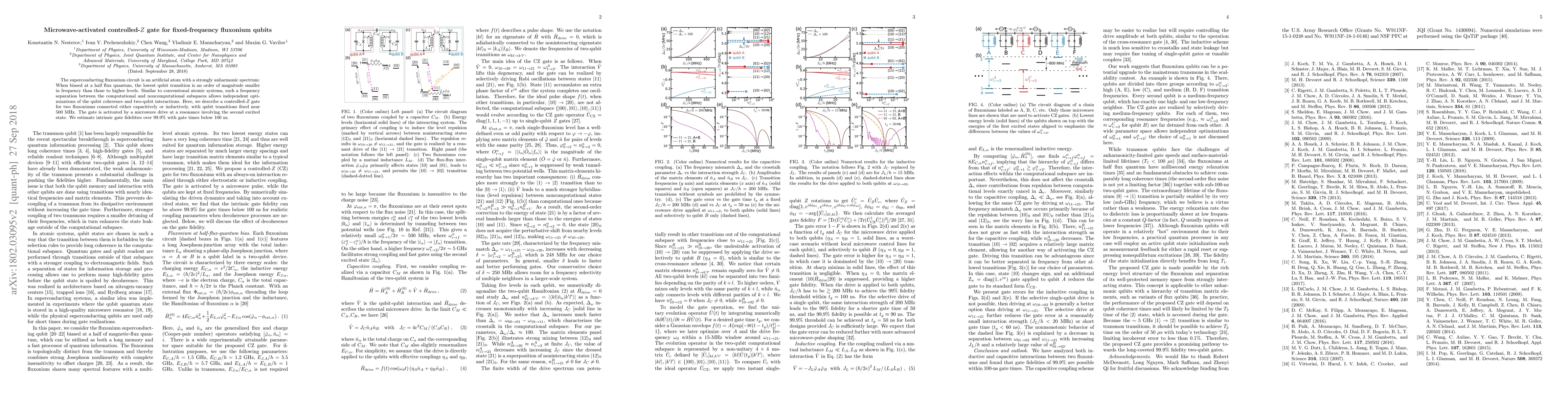 The superconducting fluxonium circuit is an artificial atom with a strongly anharmonic spectrum: when biased at a half flux quantum, the lowest qubit transition is an order of magnitude smaller in frequency than those to higher levels. Similar to conventional atomic systems, such a frequency separation between the computational and noncomputational subspaces allows independent optimizations of the qubit coherence and two-qubit interactions. Here we describe a controlled-Z gate for two fluxoniums connected either capacitively or inductively, with qubit transitions fixed near 500 MHz. The gate is activated by a microwave drive at a resonance involving the second excited state. We estimate intrinsic gate fidelities over 99.9% with gate times below 100 ns.