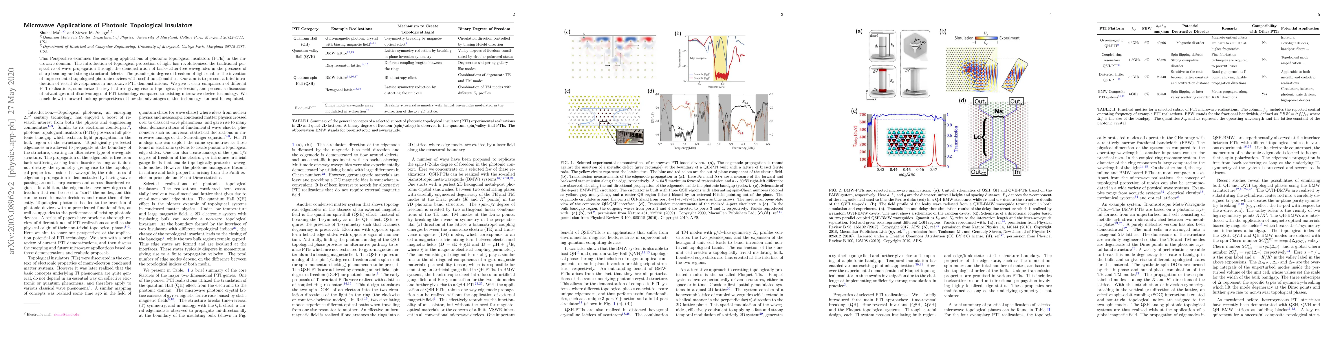 This paper explores the novel microwave applications of photonic topological insulators (PTIs), highlighting their topological protection and backscatter-free waveguides. It compares various PTI implementations, discusses their advantages and limitations, and offers insights into future exploitation of their benefits.