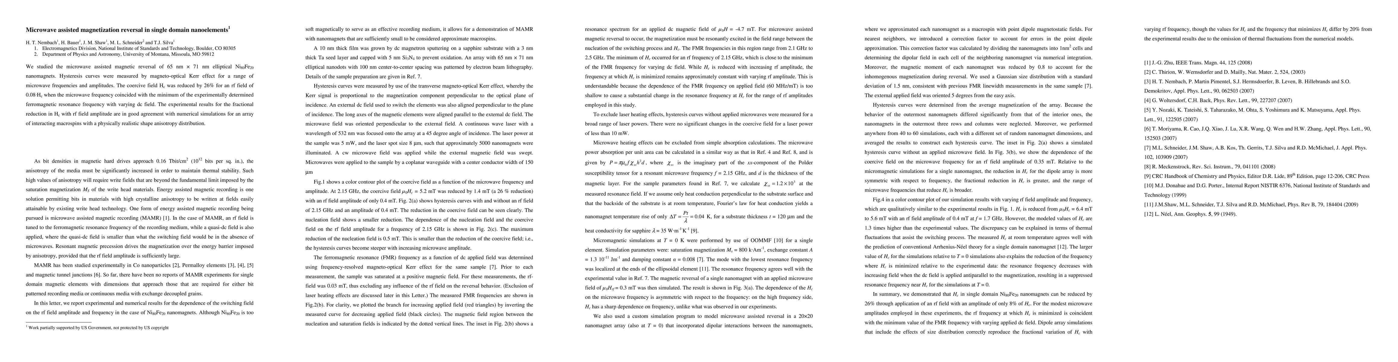 Researchers found that using microwave frequencies near a specific point can reduce the magnetic field required for reversal in tiny nanomagnets, a potential step towards faster magnetization switching in electronic devices.