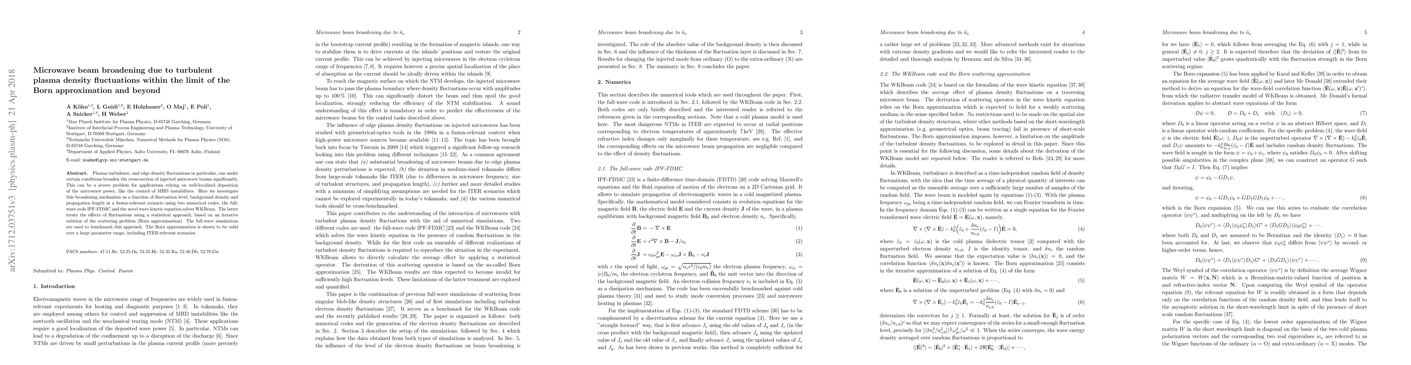 This paper investigates the broadening of microwave beams due to turbulent plasma density fluctuations, focusing on the Born approximation and beyond. It uses two numerical codes to analyze the effects of fluctuation levels, background density, and propagation length in fusion scenarios, demonstrating the Born approximation's validity over a wide range, including ITER conditions.
