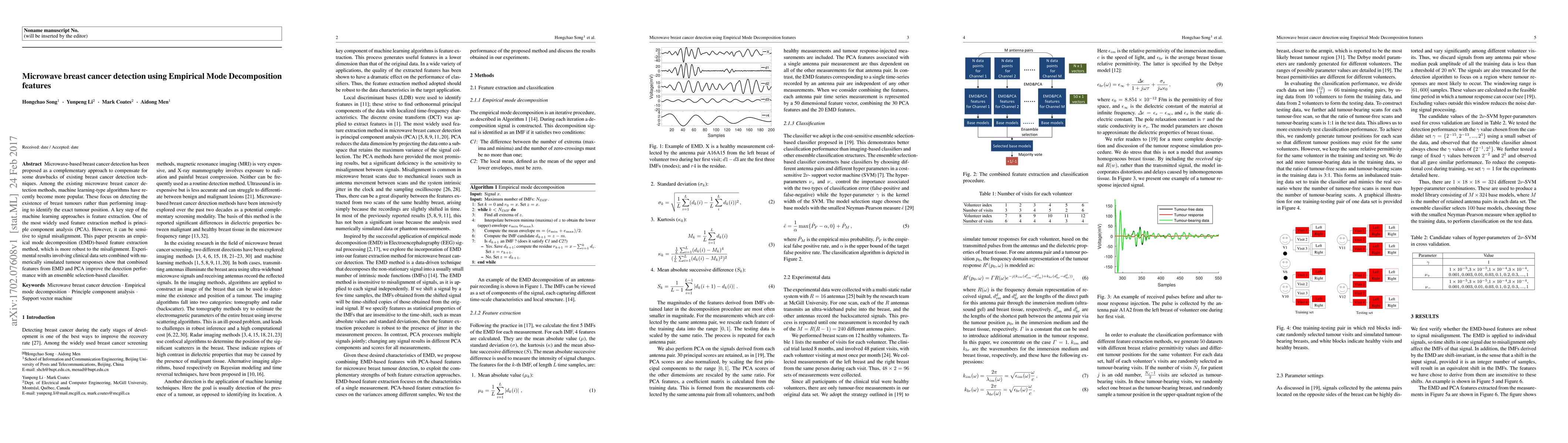 A novel method using Empirical Mode Decomposition improves microwave breast cancer detection by combining features extracted from PCA with EMD, leading to enhanced detection performance.