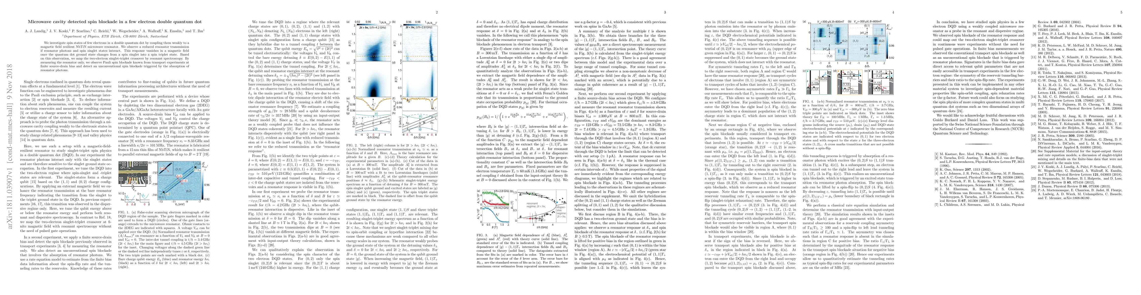 We investigate spin states of few electrons in a double quantum dot by coupling them weakly to a magnetic field resilient NbTiN microwave resonator. We observe a reduced resonator transmission if resonator photons and spin singlet states interact. This response vanishes in a magnetic field once the quantum dot ground state changes from a spin singlet into a spin triplet state. Based on this observation, we map the two-electron singlet-triplet crossover by resonant spectroscopy. By measuring the resonator only, we observe Pauli spin blockade known from transport experiments at finite source-drain bias and detect an unconventional spin blockade triggered by the absorption of resonator photons.