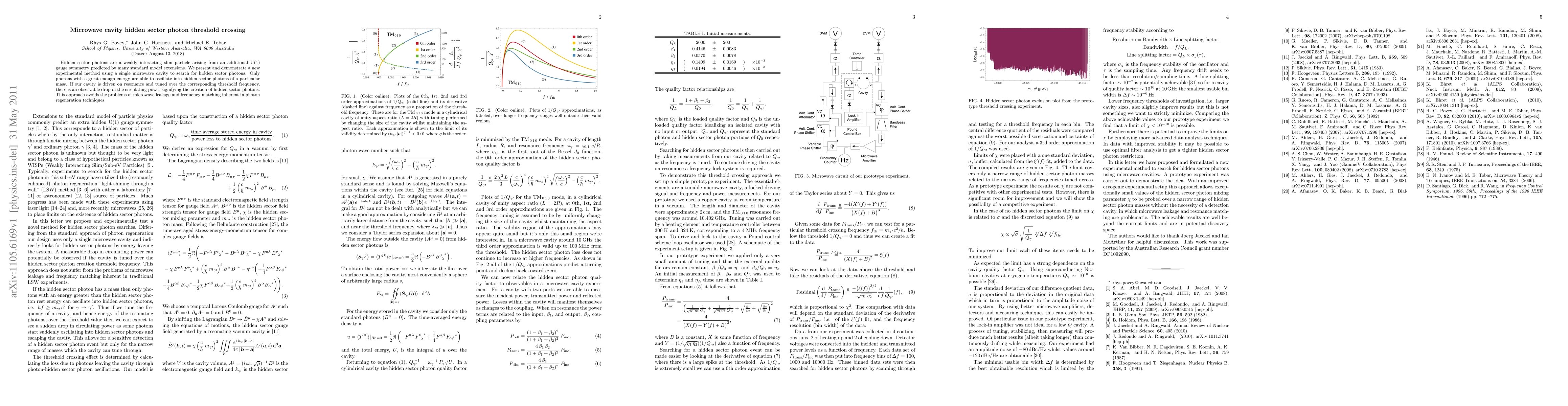 This paper proposes a novel experimental method using a single microwave cavity to detect hidden sector photons by observing a drop in circulating power when photons cross the threshold frequency, avoiding issues with leakage and frequency matching. The method aims to identify weakly interacting slim particles predicted by extensions of the standard model.