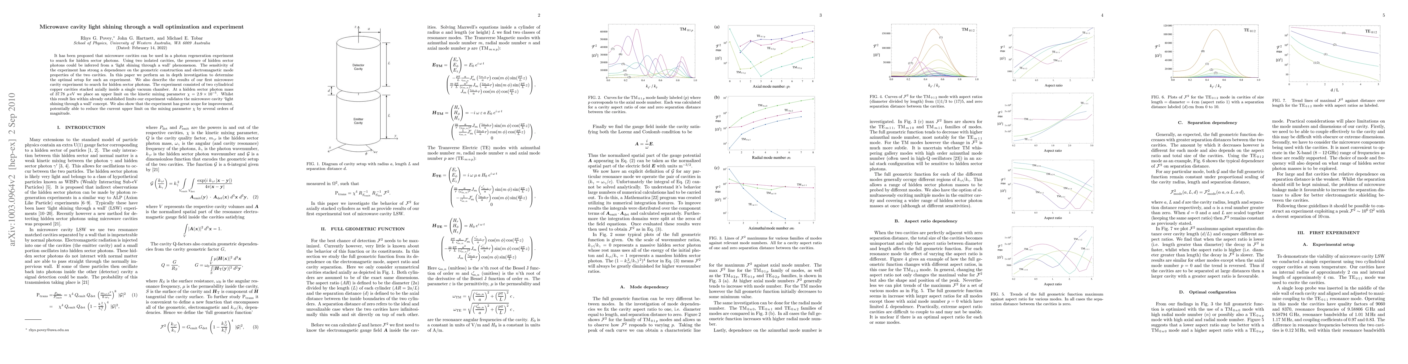 This paper investigates the optimal setup for a microwave cavity experiment to detect hidden sector photons via a "light shining through a wall" phenomenon, achieving an upper limit on the kinetic mixing parameter chi of 2.9 * 10^(-5) at a photon mass of 37.78 micro eV. The study validates the concept and suggests significant room for improvement to enhance sensitivity.