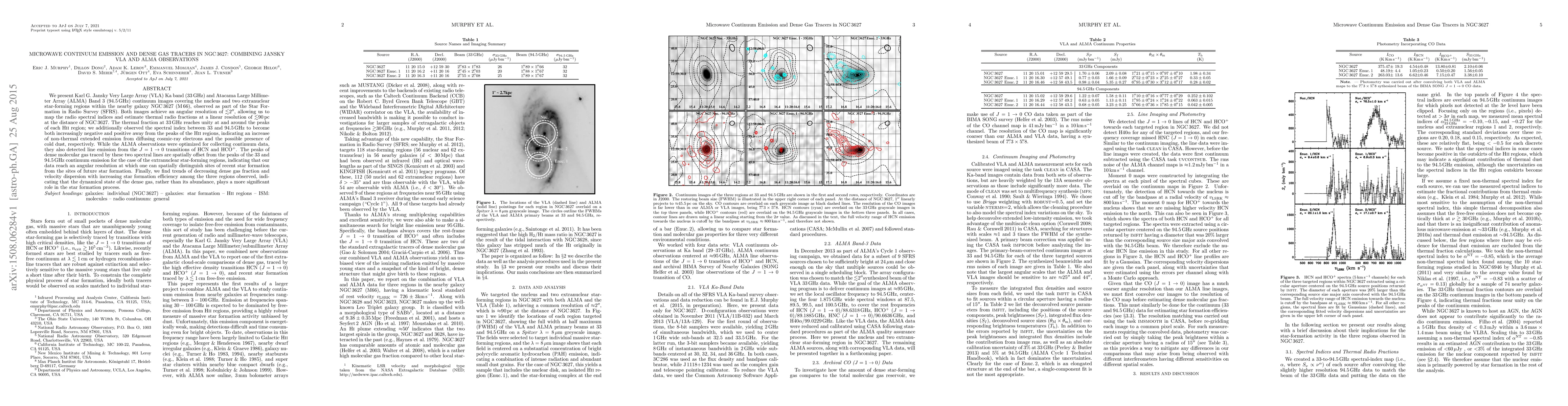 We present Karl G. Jansky Very Large Array (VLA) Ka band (33 GHz) and Atacama Large Millimeter Array (ALMA) Band 3 (94.5 GHz) continuum images covering the nucleus and two extranuclear star-forming regions within the nearby galaxy NGC 3627 (M 66), observed as part of the Star Formation in Radio Survey (SFRS). Both images achieve an angular resolution of $\lesssim$2\arcsec, allowing us to map the radio spectral indices and estimate thermal radio fractions at a linear resolution of $\lesssim$90 pc at the distance of NGC 3627. The thermal fraction at 33 GHz reaches unity at and around the peaks of each HII region; we additionally observed the spectral index between 33 and 94.5 GHz to become both increasingly negative and positive away from the peaks of the HII regions, indicating an increase of non-thermal extended emission from diffusing cosmic-ray electrons and the possible presence of cold dust, respectively. While the ALMA observations were optimized for collecting continuum data, they also detected line emission from the $J=1\rightarrow0$ transitions of HCN and HCO$^{+}$. The peaks of dense molecular gas traced by these two spectral lines are spatially offset from the peaks of the 33 and 94.5 GHz continuum emission for the case of the extranuclear star-forming regions, indicating that our data reach an angular resolution at which one can spatially distinguish sites of recent star formation from the sites of future star formation. Finally, we find trends of decreasing dense gas fraction and velocity dispersion with increasing star formation efficiency among the three regions observed, indicating that the dynamical state of the dense gas, rather than its abundance, plays a more significant role in the star formation process.