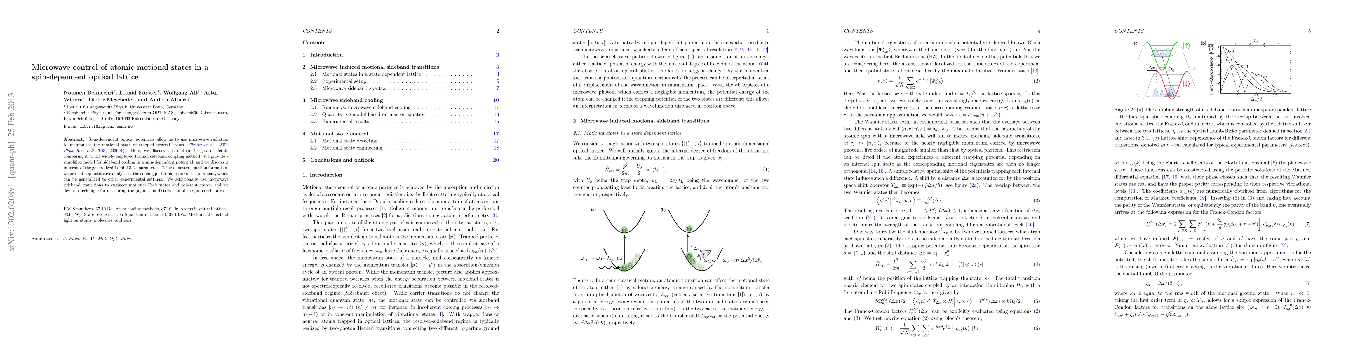 Spin-dependent optical potentials allow us to use microwave radiation to manipulate the motional state of trapped neutral atoms (F\"orster et al. 2009 Phys. Rev. Lett. 103, 233001). Here, we discuss this method in greater detail, comparing it to the widely-employed Raman sideband coupling method. We provide a simplified model for sideband cooling in a spin-dependent potential, and we discuss it in terms of the generalized Lamb-Dicke parameter. Using a master equation formalism, we present a quantitative analysis of the cooling performance for our experiment, which can be generalized to other experimental settings. We additionally use microwave sideband transitions to engineer motional Fock states and coherent states, and we devise a technique for measuring the population distribution of the prepared states.