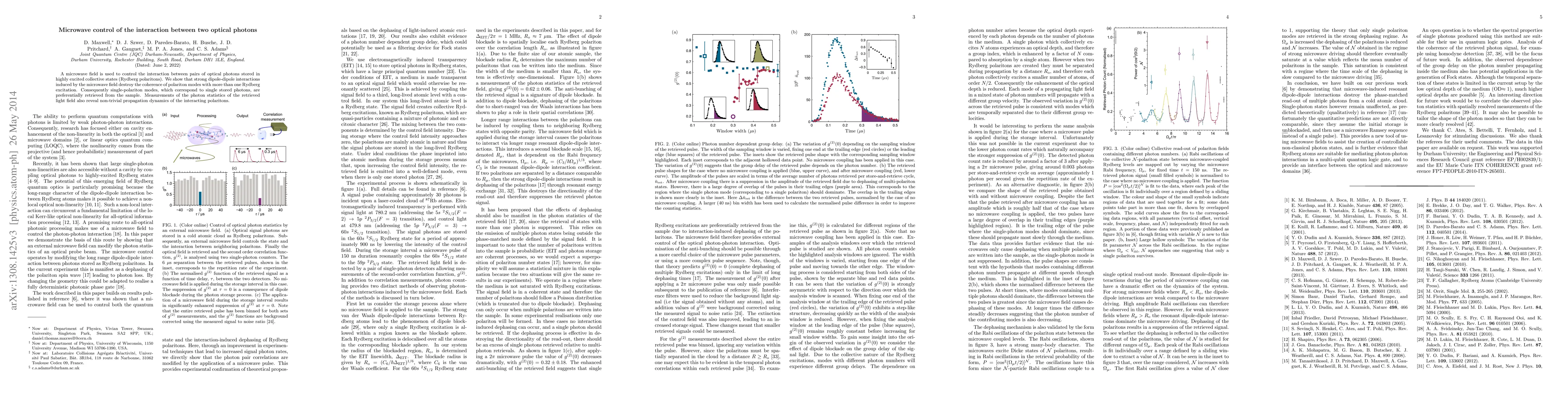 This paper demonstrates the use of microwave fields to manipulate the interaction between optical photons stored in Rydberg polaritons, showing that microwave-induced dipole-dipole interactions disrupt coherence in multi-photon states, leading to the preferential retrieval of single-photon states. The study also reveals complex propagation dynamics of the interacting polaritons.