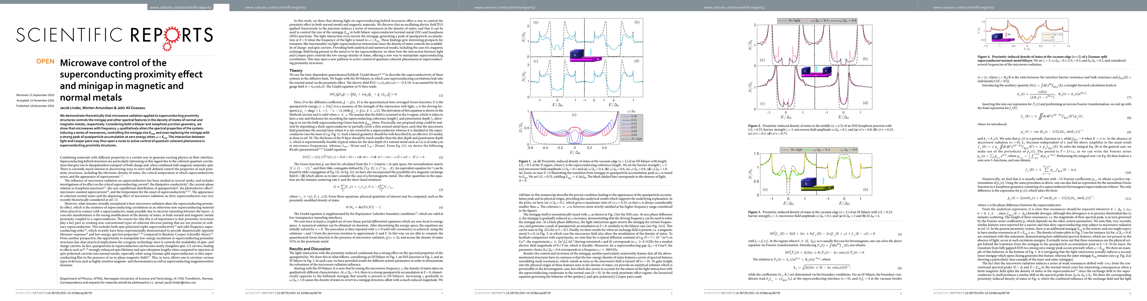 This paper theoretically shows that microwave irradiation can control the minigap and triplet proximity effect in superconducting structures involving normal and magnetic metals. The study reveals that adjusting the frequency of microwaves can alter the spectral properties of these systems, potentially enabling active control over quantum phenomena in proximity structures.