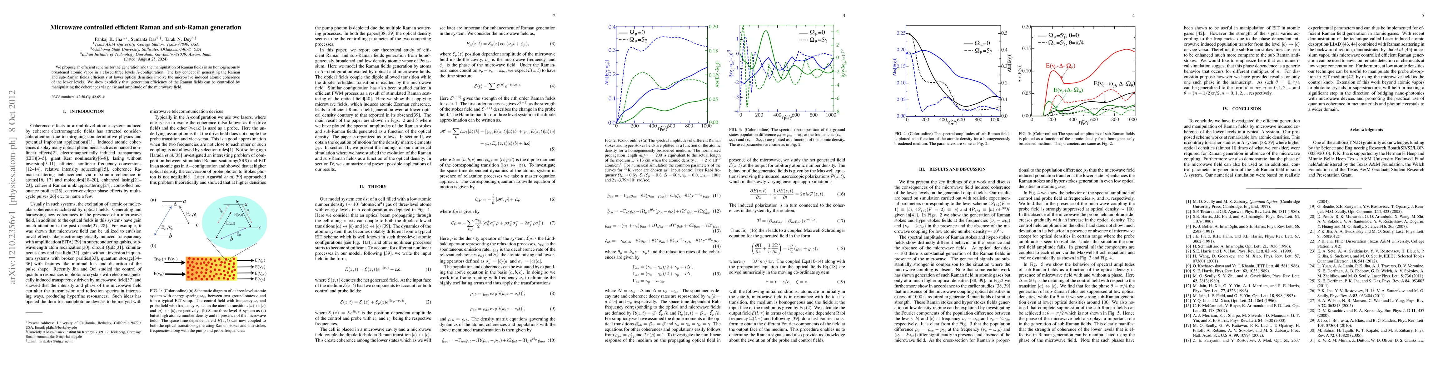 We propose an efficient scheme for the generation and the manipulation of Raman fields in an homogeneously broadened atomic vapor in a closed three levels $\Lambda$-configuration. The key concept in generating the Raman and sub-Raman fields efficiently at lower optical densities involve the microwave induced atomic coherence of the lower levels. We show explicitly that, generation efficiency of the Raman fields can be controlled by manipulating the coherences via phase and amplitude of the microwave field.