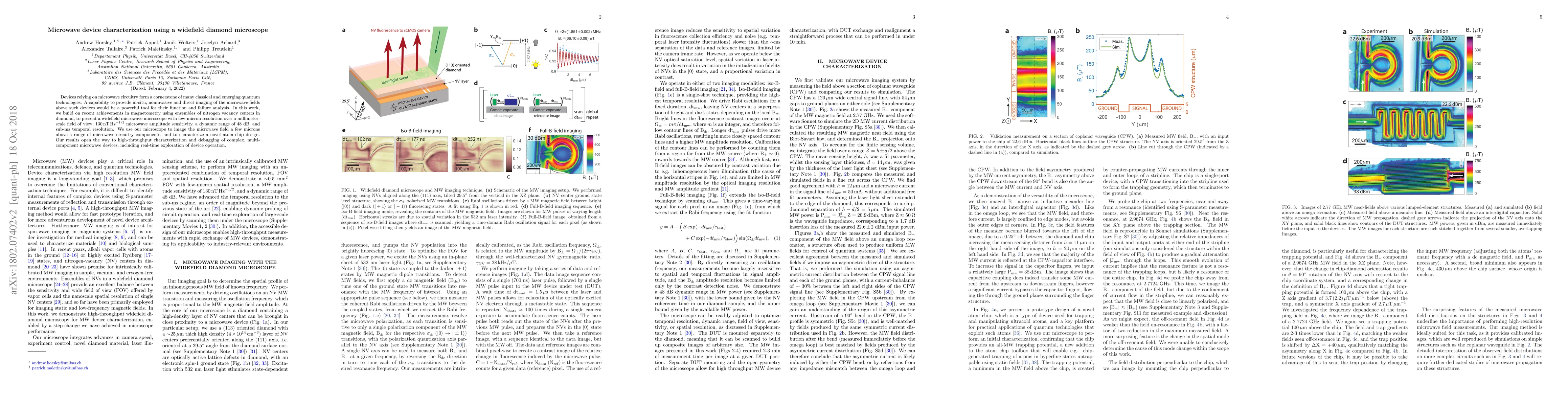 Devices relying on microwave circuitry form a cornerstone of many classical and emerging quantum technologies. A capability to provide in-situ, noninvasive and direct imaging of the microwave fields above such devices would be a powerful tool for their function and failure analysis. In this work, we build on recent achievements in magnetometry using ensembles of nitrogen vacancy centres in diamond, to present a widefield microwave microscope with few-micron resolution over a millimeter-scale field of view, 130nT/sqrt-Hz microwave amplitude sensitivity, a dynamic range of 48 dB, and sub-ms temporal resolution. We use our microscope to image the microwave field a few microns above a range of microwave circuitry components, and to characterise a novel atom chip design. Our results open the way to high-throughput characterisation and debugging of complex, multi-component microwave devices, including real-time exploration of device operation.