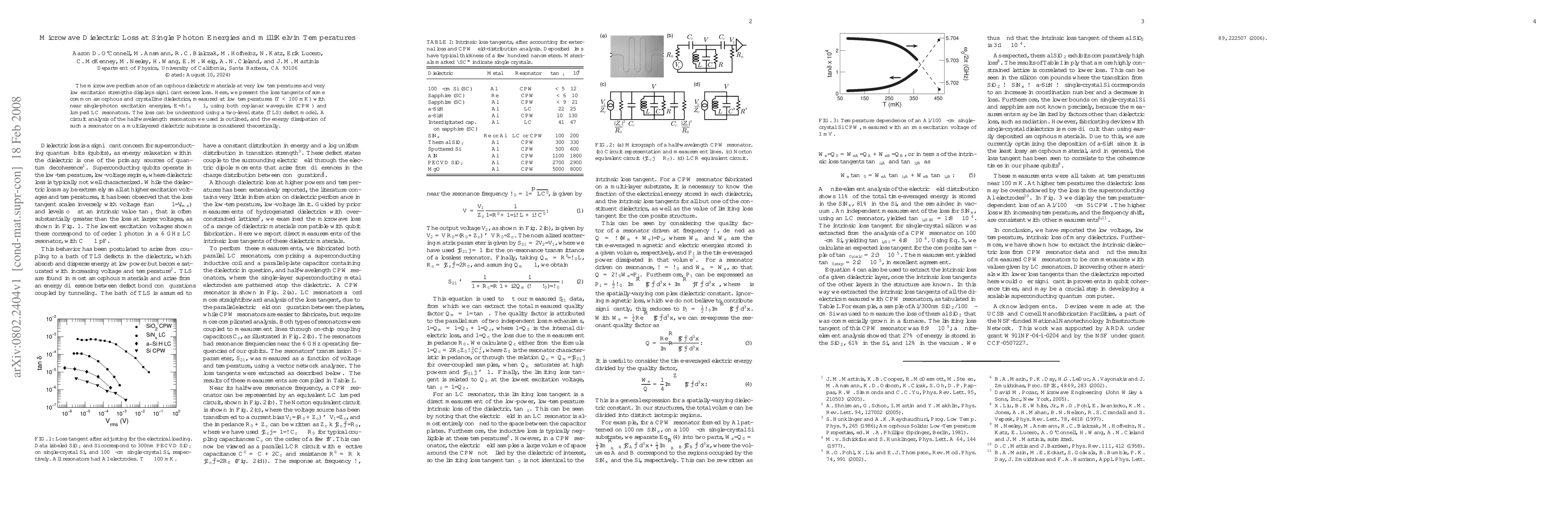 This study investigates microwave dielectric loss in amorphous and crystalline materials at milliKelvin temperatures and single-photon excitation levels, revealing significant excess loss through a two-level state defect model. The research employs coplanar waveguides and LC resonators, with theoretical analysis of energy dissipation on multilayered dielectric substrates.