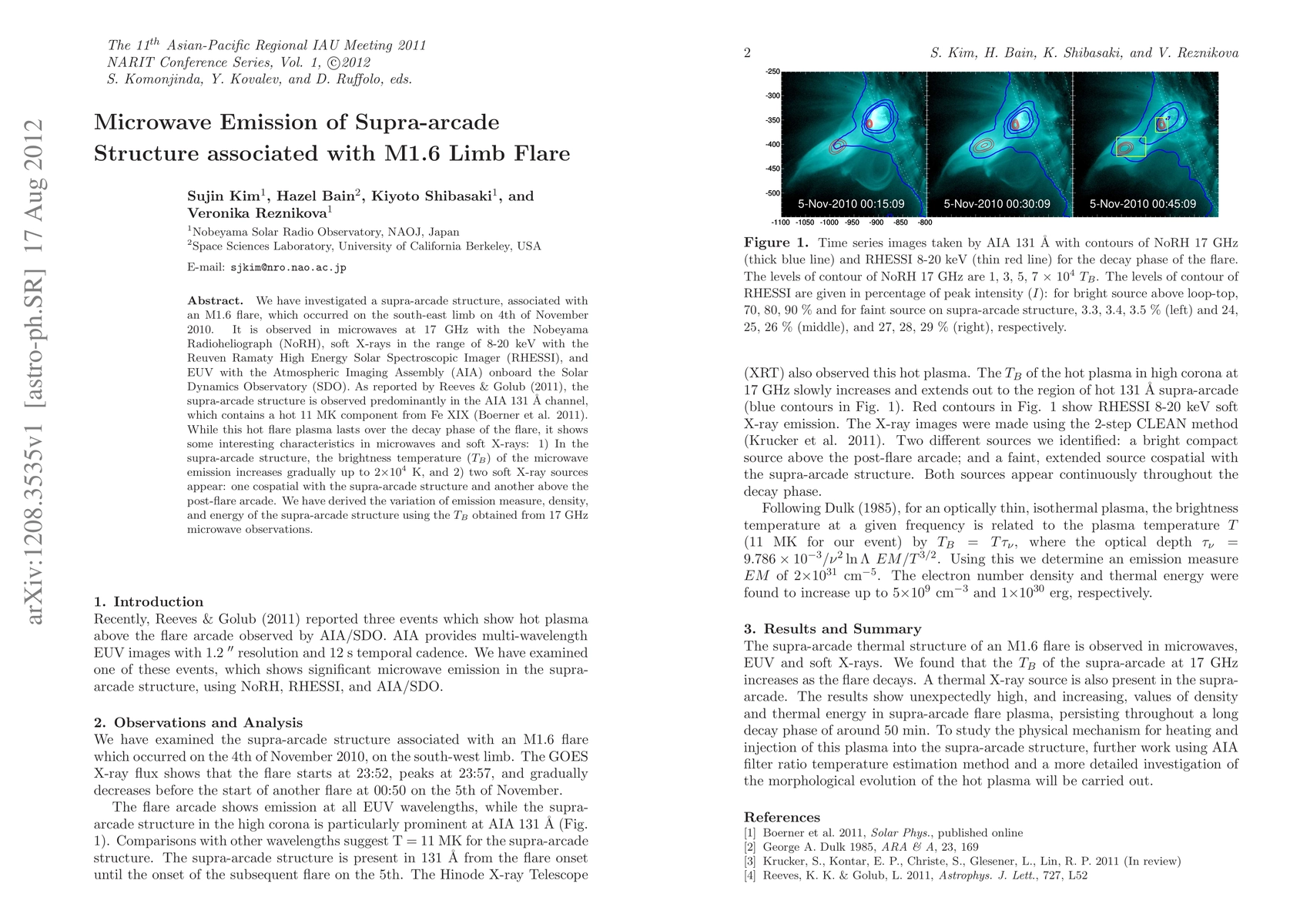 This study investigates a supra-arcade structure linked to an M1.6 flare observed on November 4, 2010, using microwave, soft X-ray, and EUV data. The structure shows a gradual increase in microwave brightness temperature up to 2×10^4 K and reveals two soft X-ray sources, one cospatial with the structure and another above the post-flare arcade.