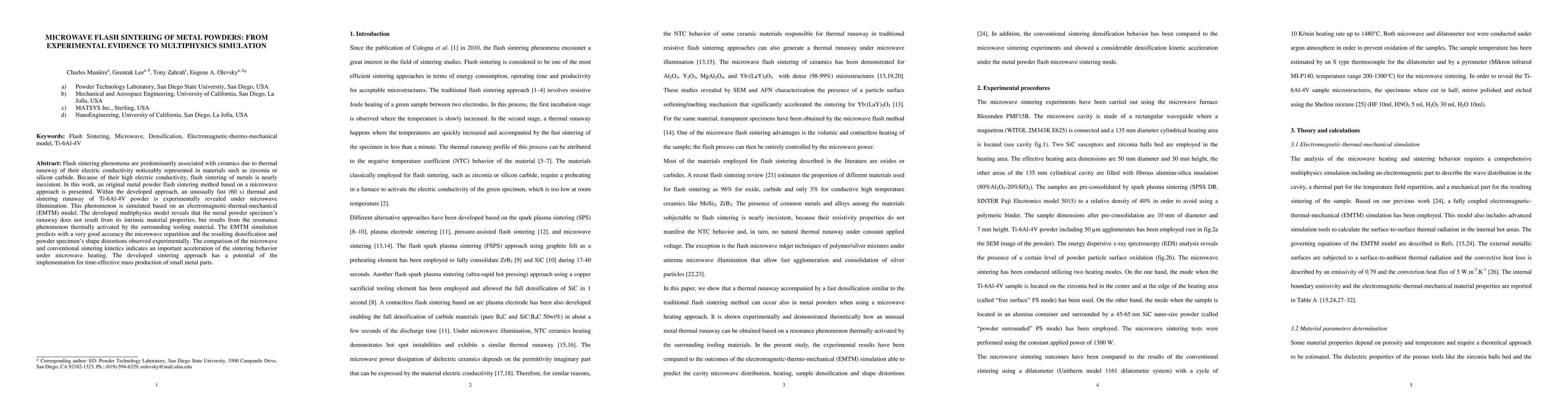This paper presents a novel microwave flash sintering method for metal powders, demonstrating rapid sintering of Ti-6Al-4V in 60 seconds. The study combines experimental evidence and multiphysics simulation to reveal that the sintering phenomenon is driven by resonance in the surrounding tooling material, not intrinsic metal properties.