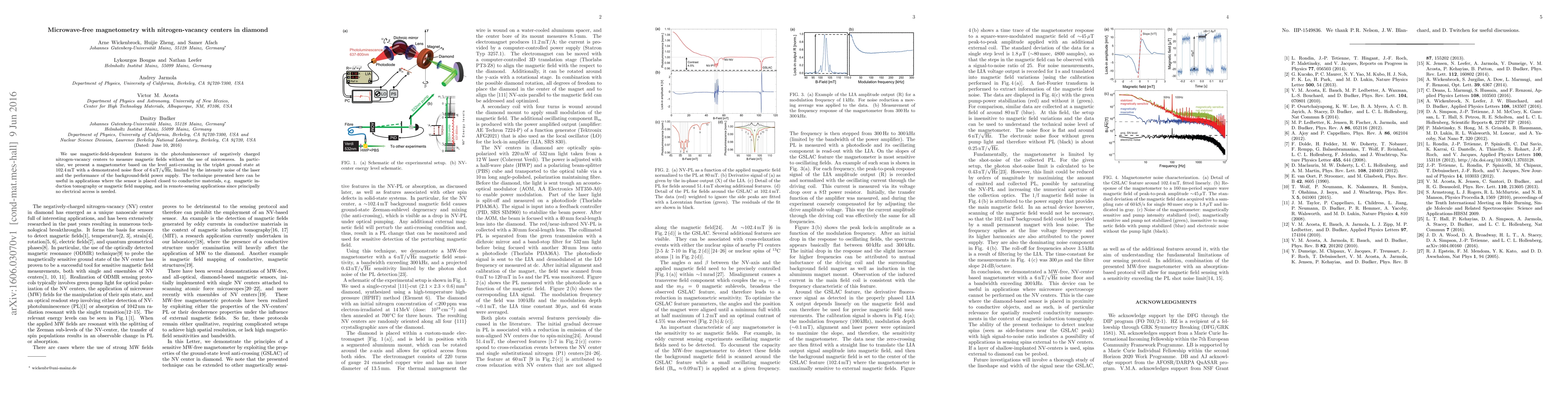 Scientists have developed a method to measure magnetic fields using nitrogen-vacancy centers in diamond without microwaves, achieving sensitivity of 6 nT/$ ext{ } ext{Hz}$ at 102.4 mT.