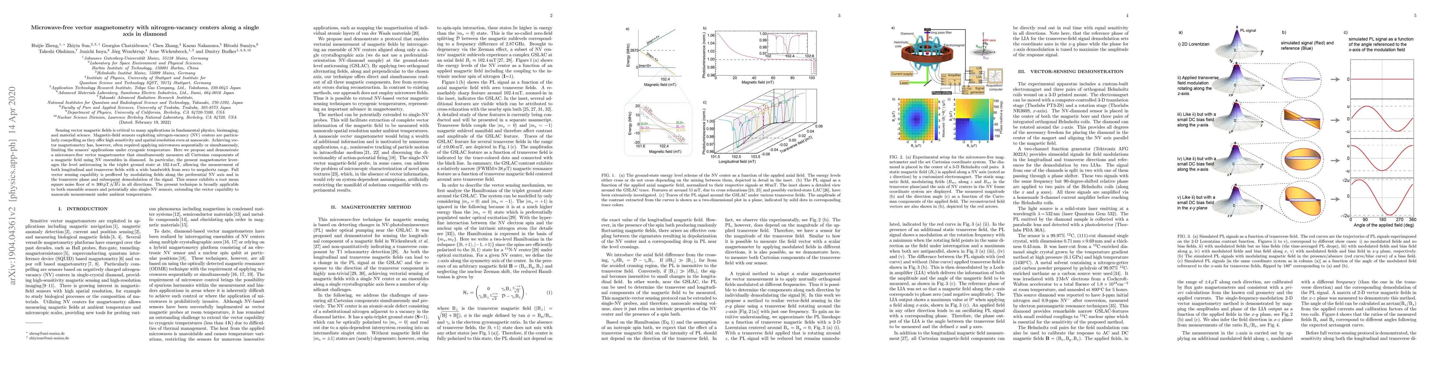 This paper proposes a microwave-free vector magnetometer using nitrogen-vacancy centers in diamond to measure all magnetic field components without the need for microwaves, achieving high sensitivity and spatial resolution. The technique leverages level anticrossing in the NV centers' triplet ground state for wide-bandwidth sensing, offering a noise floor of 300 pT/Hz^(1/2).