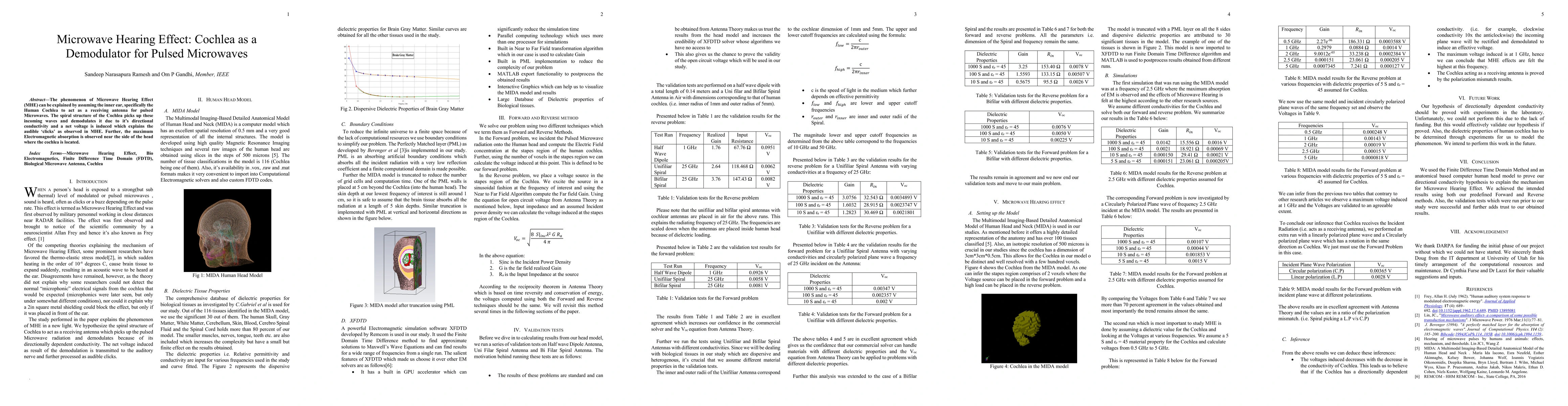 Research proposes that the human cochlea acts as a receiving antenna for pulsed microwaves, demodulating them to produce audible clicks, known as Microwave Hearing Effect.